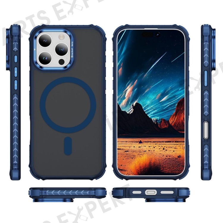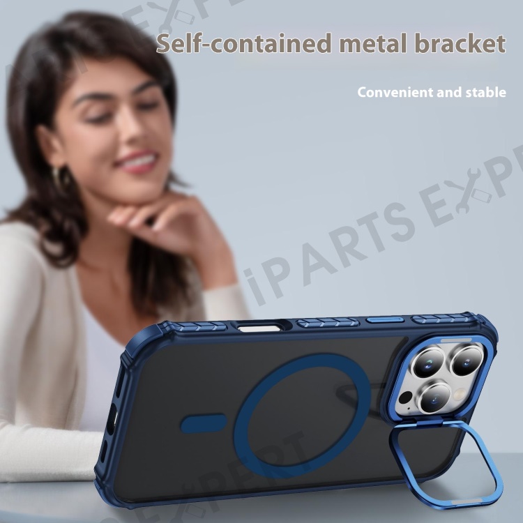 For iPhone 16 Pro Max Case with Lens Kickstand Matte Back Cover Compatible with MagSafe - Blue