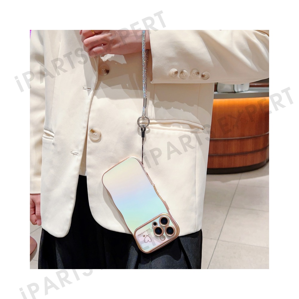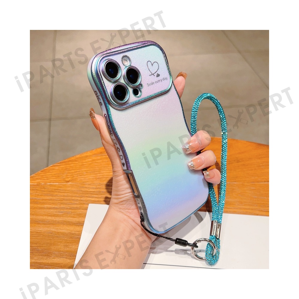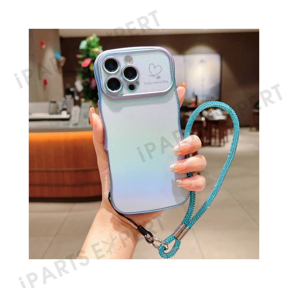 For iPhone 16 Pro Max Case with Strap TPU Phone Back Cover Dazzling Design Curly Shape Love Heart - Colorful Blue