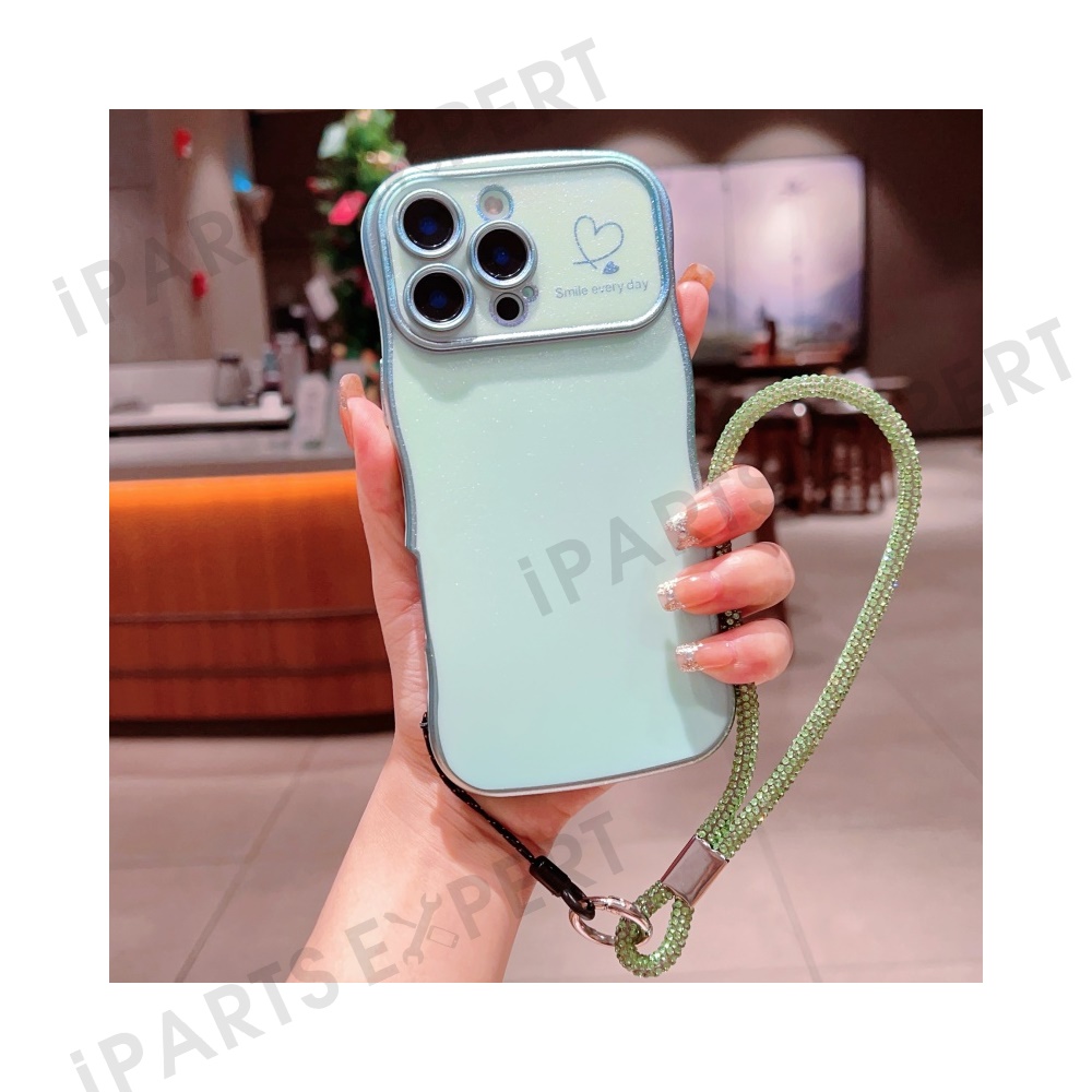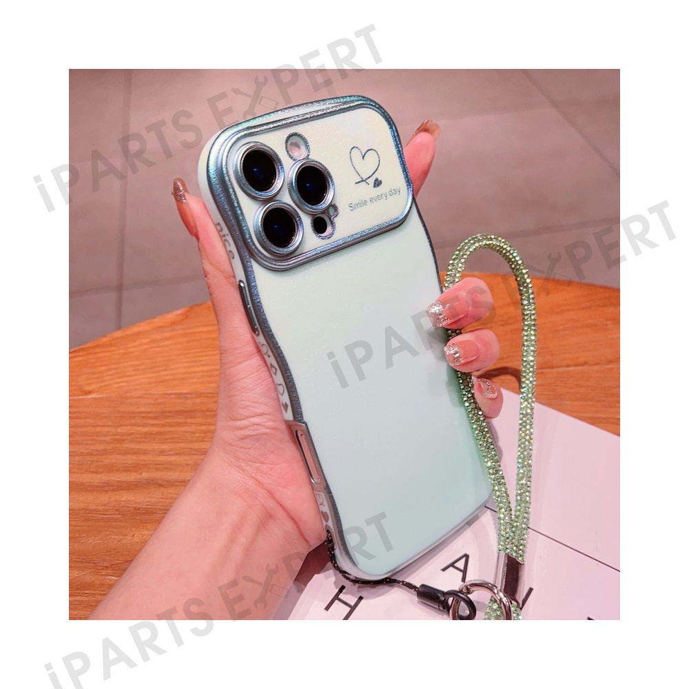 For iPhone 16 Pro Max Case with Strap TPU Phone Back Cover Dazzling Design Curly Shape Love Heart - Colorful White