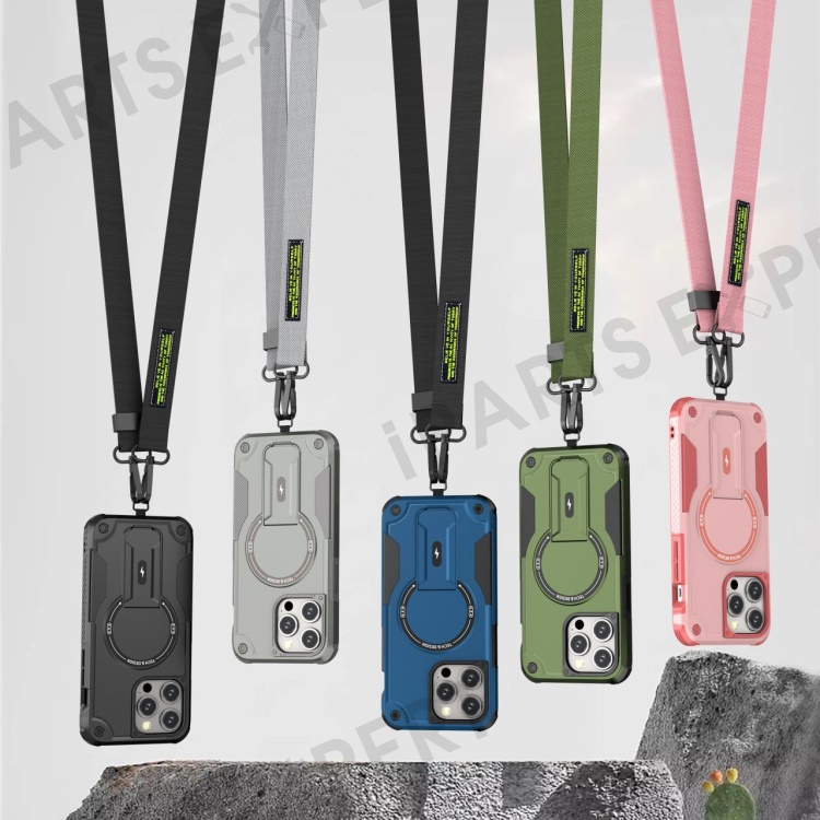 For iPhone 16 Pro Max Case Compatible with MagSafe TPU+PC Kickstand Phone Cover with Strap - Grey