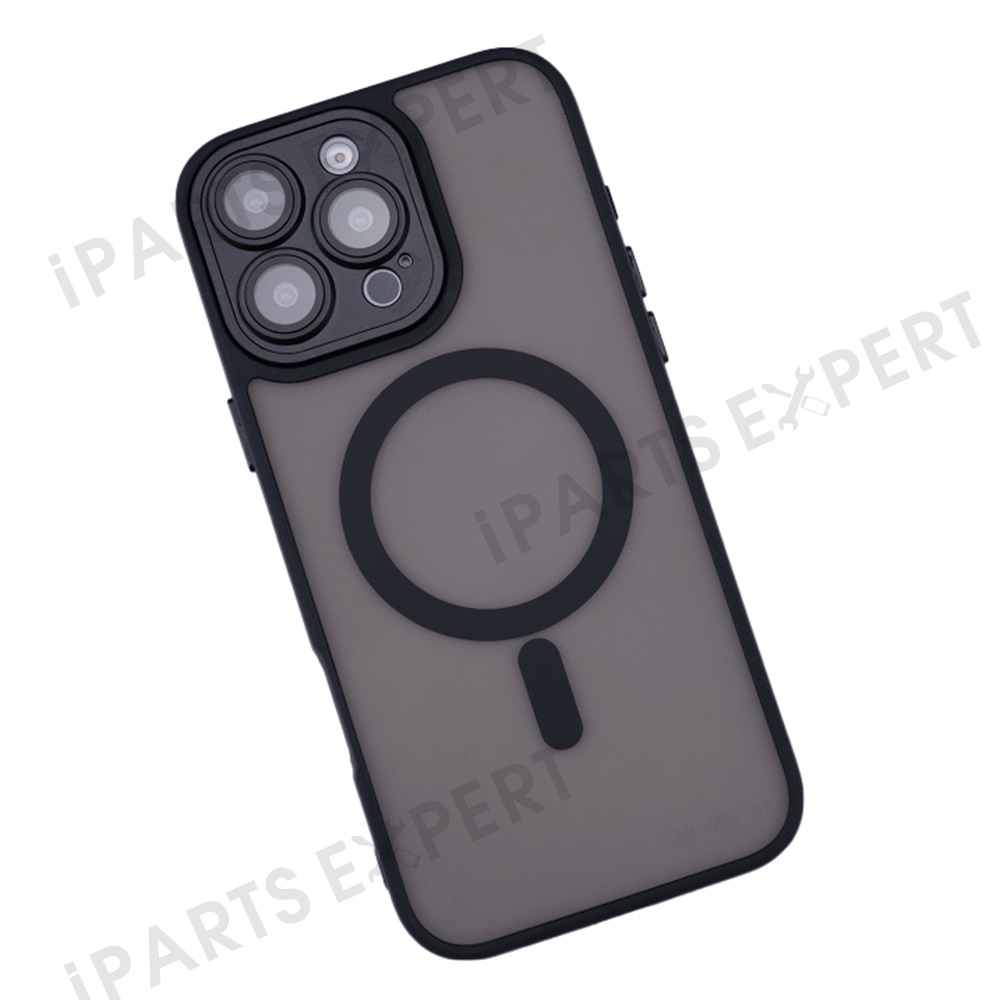 For iPhone 16 Pro Max Magnetic Case with Lens Film / Detachable Lens Frame Hybrid Phone Back Cover - Black