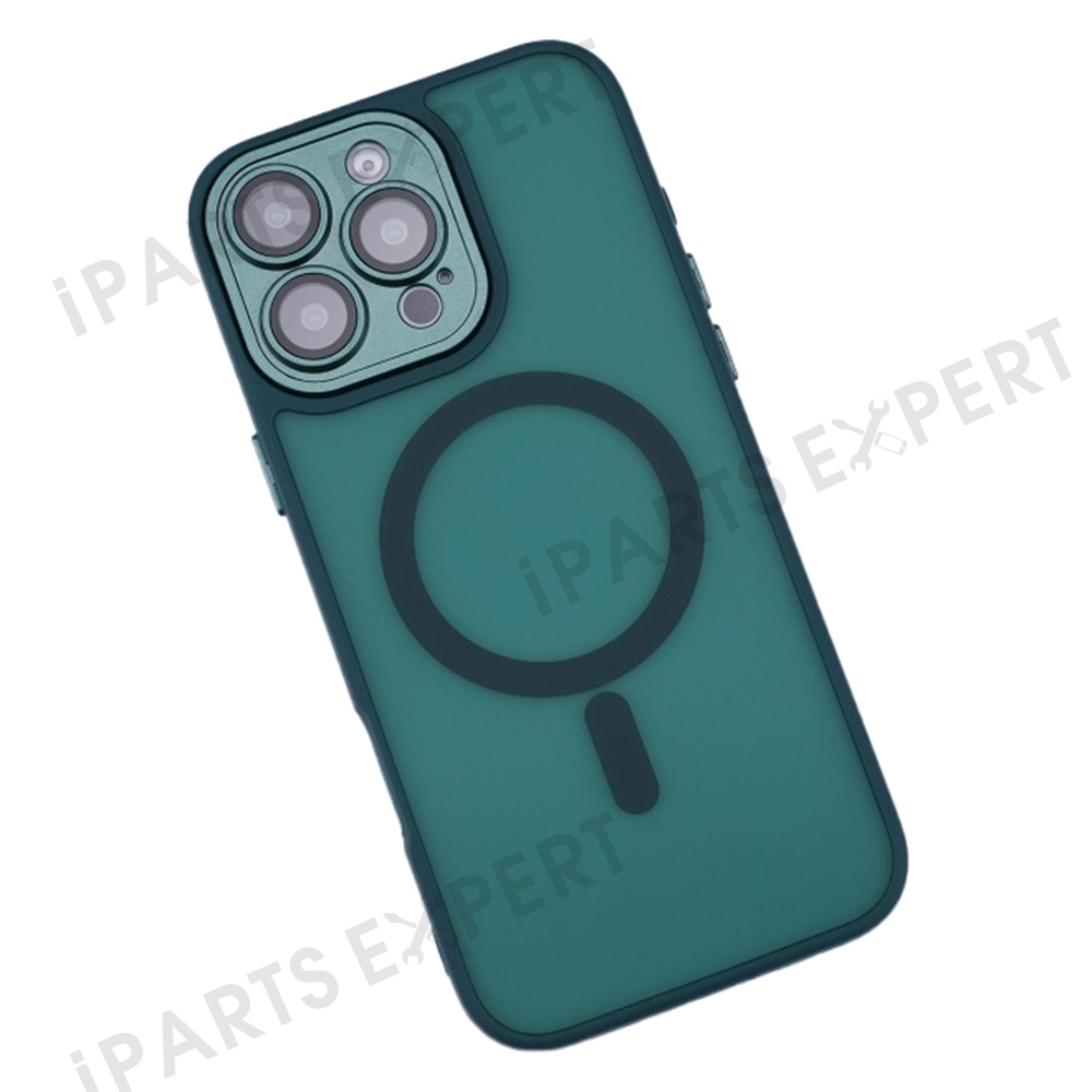 For iPhone 16 Pro Max Magnetic Case with Lens Film / Detachable Lens Frame Hybrid Phone Back Cover - Dark Green