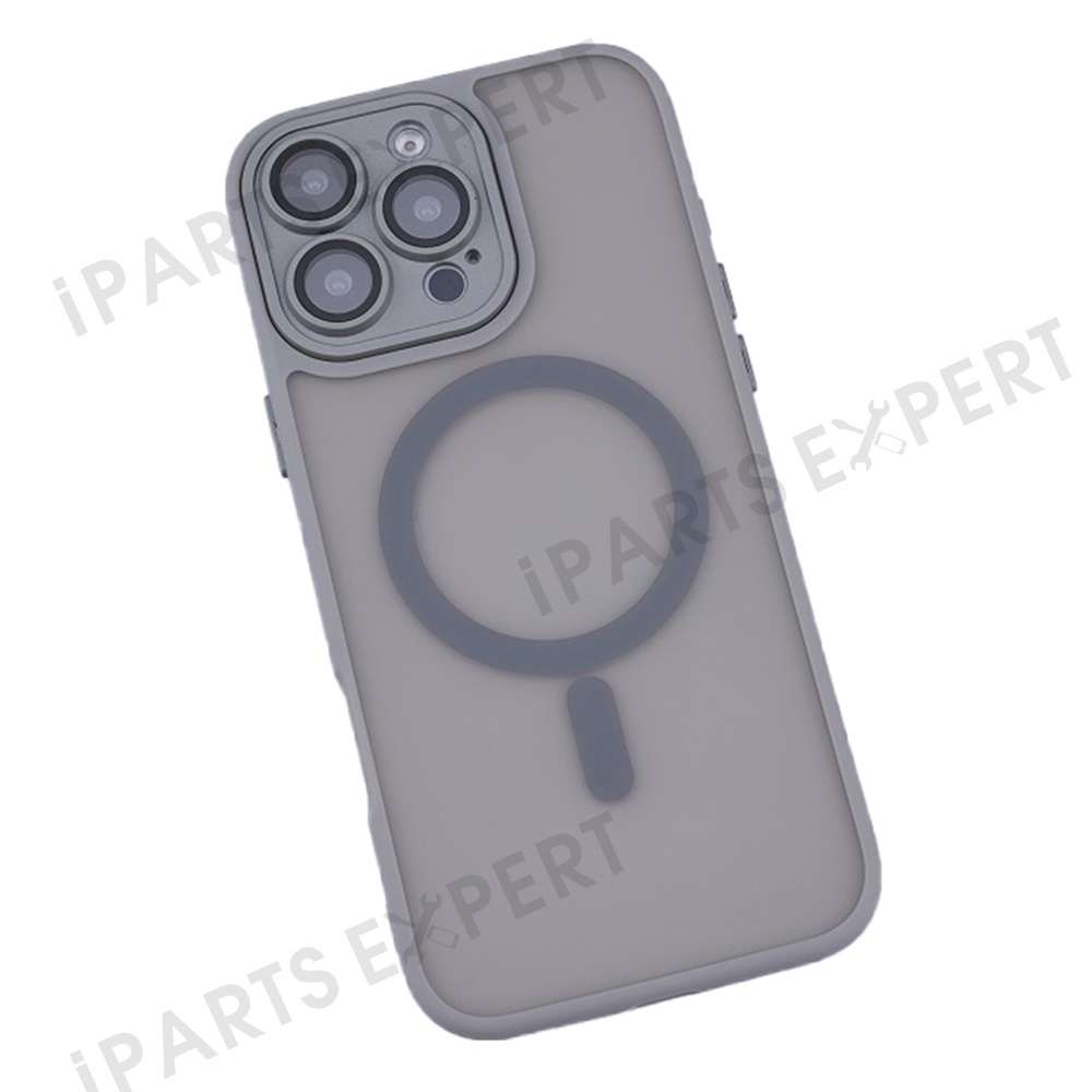 For iPhone 16 Pro Max Magnetic Case with Lens Film / Detachable Lens Frame Hybrid Phone Back Cover - Grey