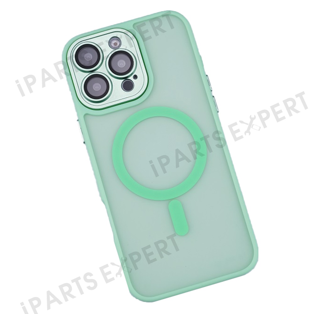 For iPhone 16 Pro Max Magnetic Case with Lens Film / Detachable Lens Frame Hybrid Phone Back Cover - Mint Green
