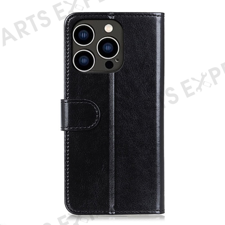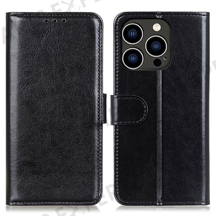 For iPhone 16 Pro Max Wallet Case Crazy Horse Texture Leather Phone Cover - Black