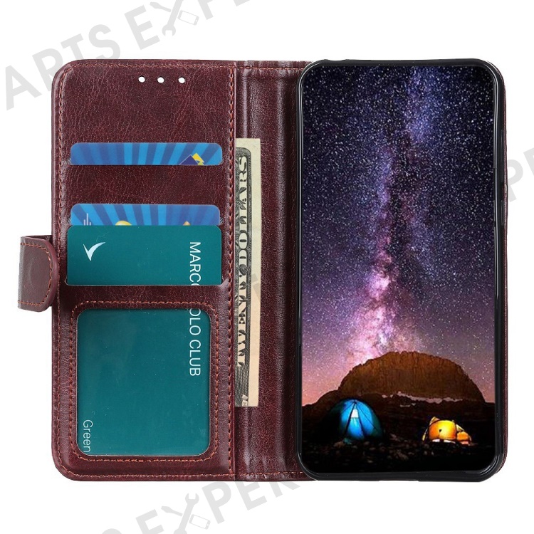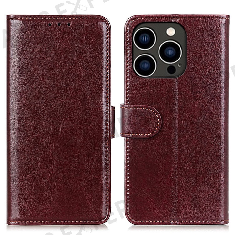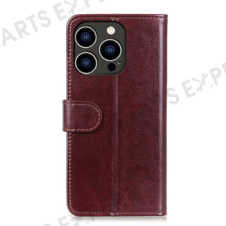 For iPhone 16 Pro Max Wallet Case Crazy Horse Texture Leather Phone Cover - Brown