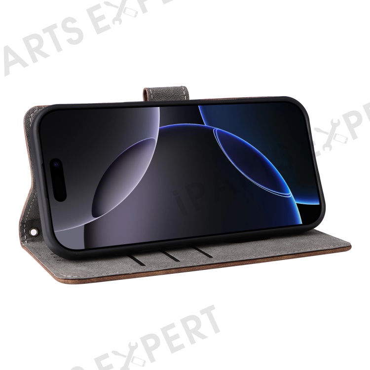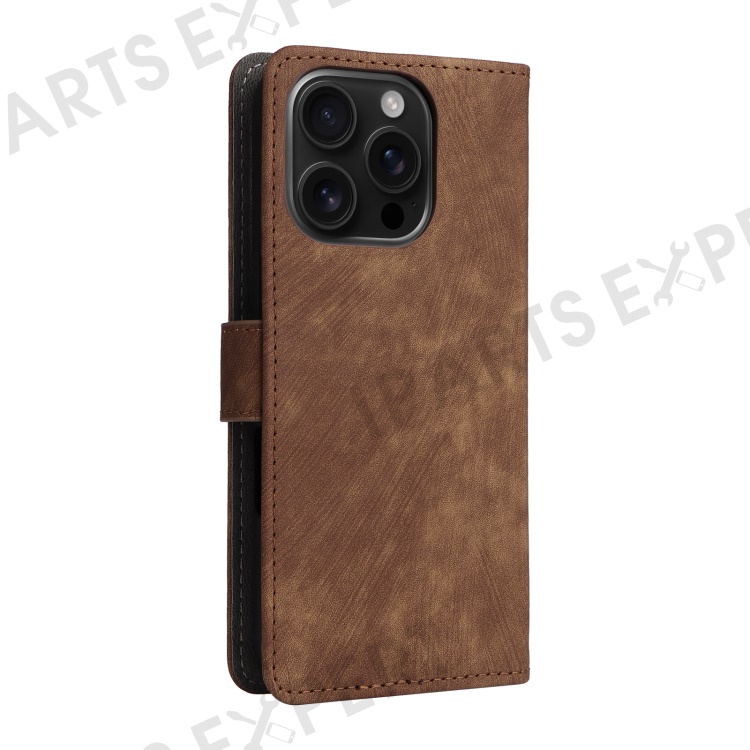 For iPhone 16 Pro Wallet Case RFID Blocking PU Leather Cover Stand View - Brown