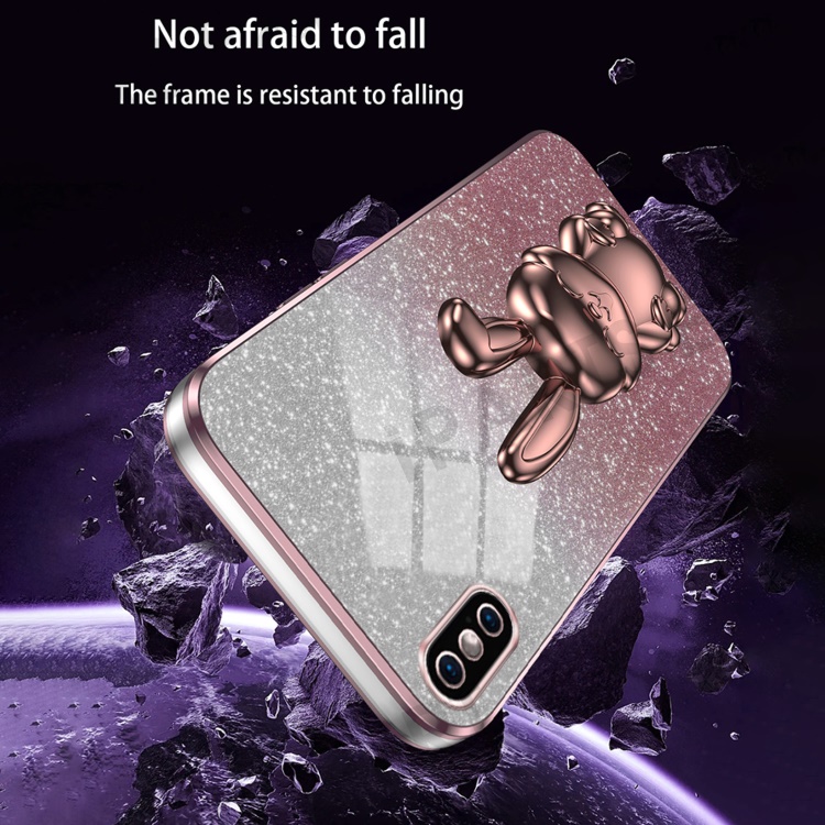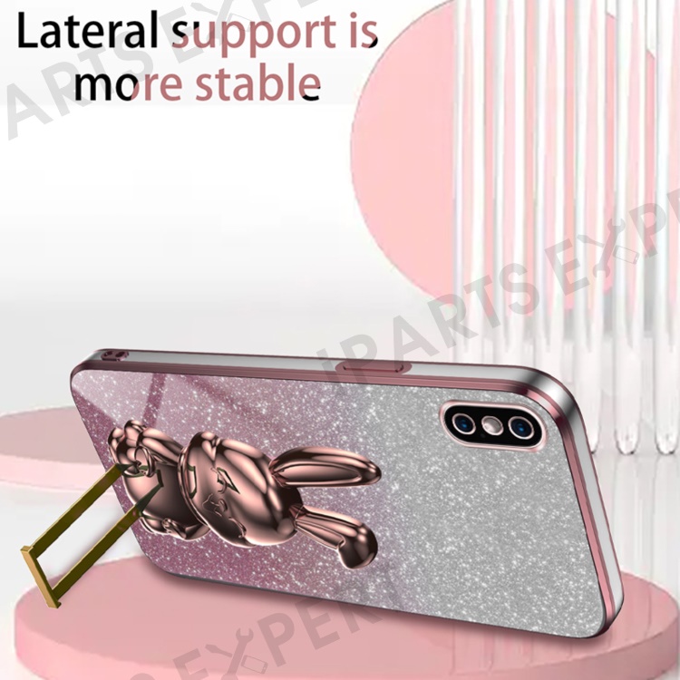 For iPhone XS Max Pull-out Kickstand Phone Cover Fall Protection Rabbit Case - Pink