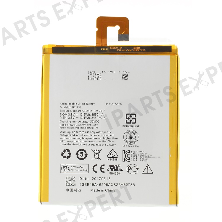 For Lenovo IdeaTab A7-50 A3500 / IdeaTab S5000 / Tab3 7 3.8V 3450mAh Rechargeable Li-ion Polymer Battery Assembly Parts (Encode: L13D1P31) (without Logo)