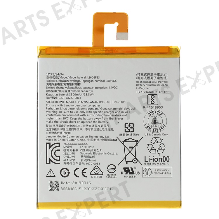For Lenovo Tab 7 3.85V 3500mAh Li-ion Polymer Battery Assembly Part (Encode: L16D1P33) (without Logo)