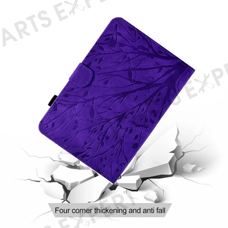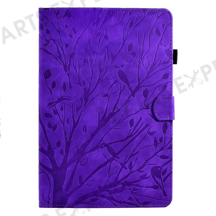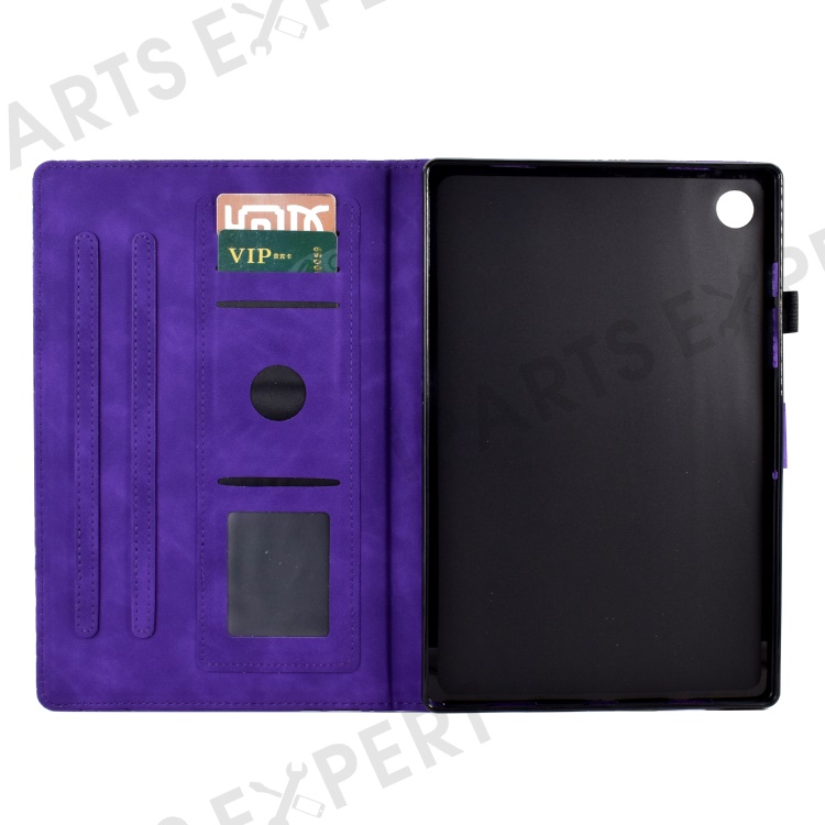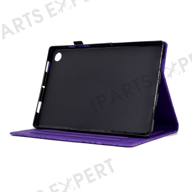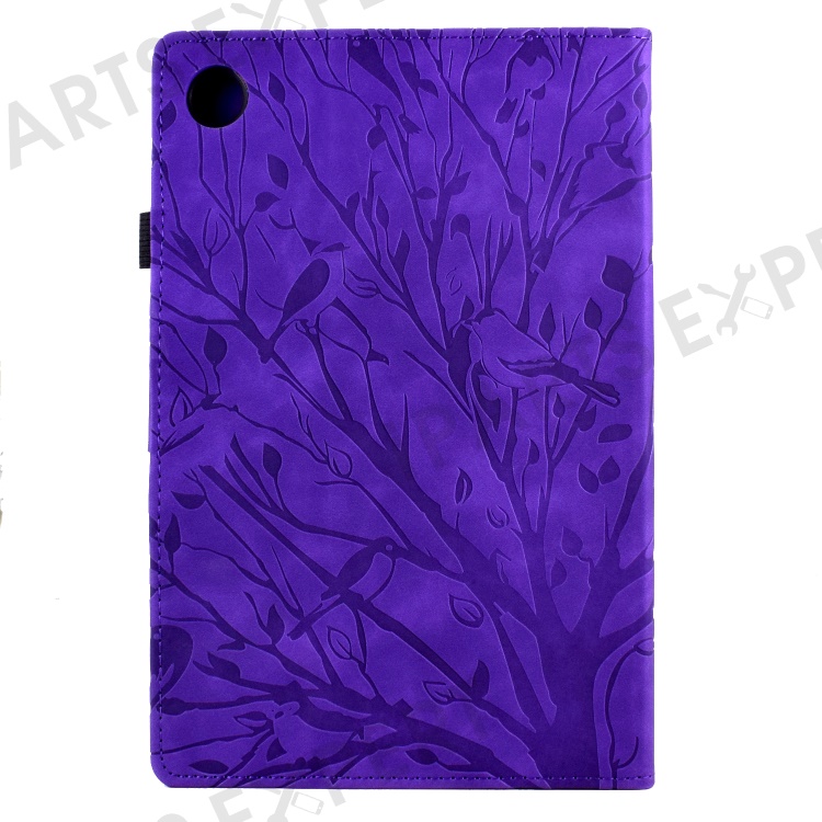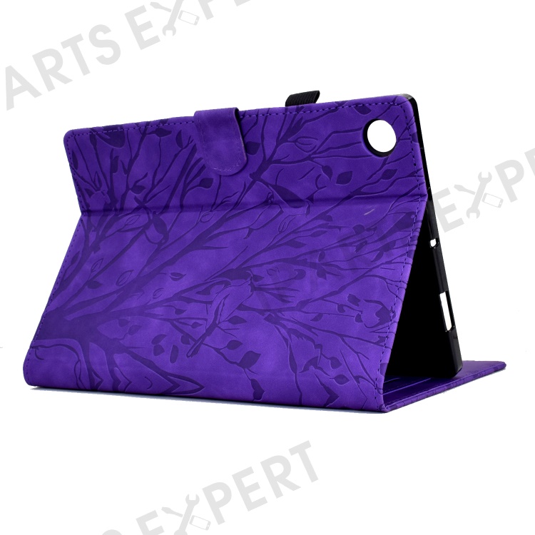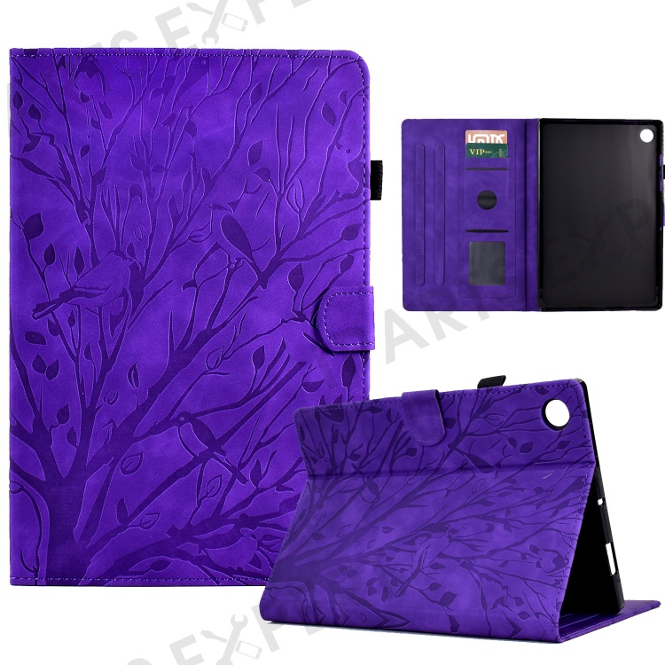 For Lenovo Tab M10 (Gen 3) Imprinted Tree Tablet Case PU Leather Card Holder Stand Cover - Purple