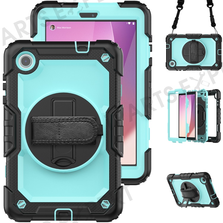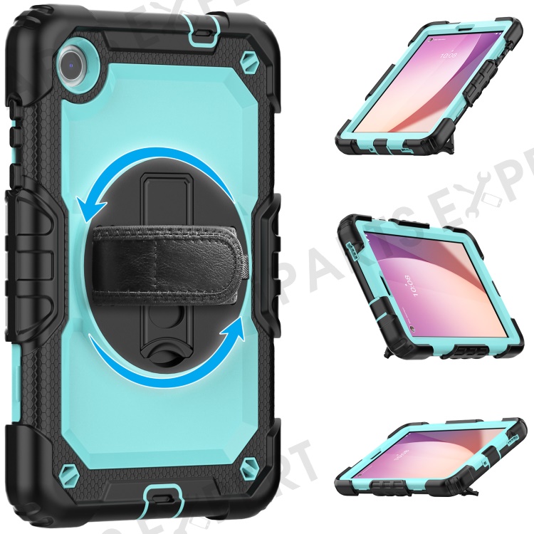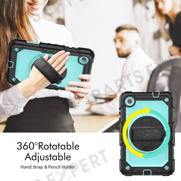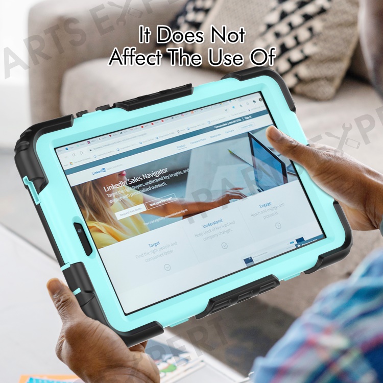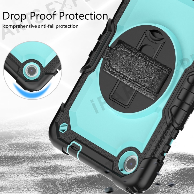 This 3-layers multifunction tablet case is combined with hard PC frame with built-in PET screen protector, hard PC inner layer with built-in kickstand hand strap, and outer silicone layer. Impact-resistant design and shock-absorbing silicone + PC materials fully cover the back and edges, protecting against accidental drops and falls. The rotary kickstand can free your hands when you're reading, watching, and surfing the internet in your free time. The portable hand grip kickstand is designed for easy carrying.