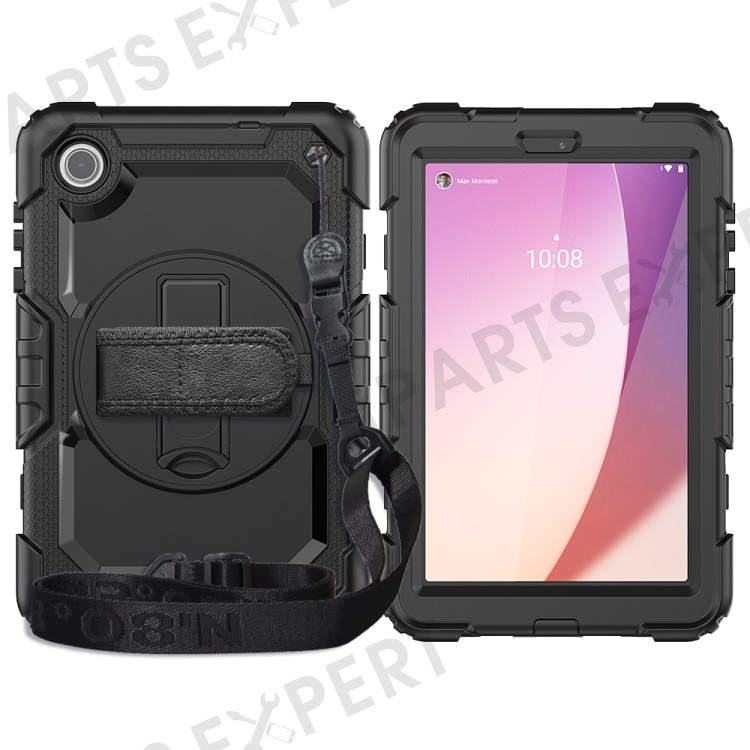 For Lenovo Tab M8 (4th Gen) 2024 TB-301XU / M8 (4th Gen) 2023 TB-300FU Silicone+PC Case Kickstand with PET Screen Film - Black