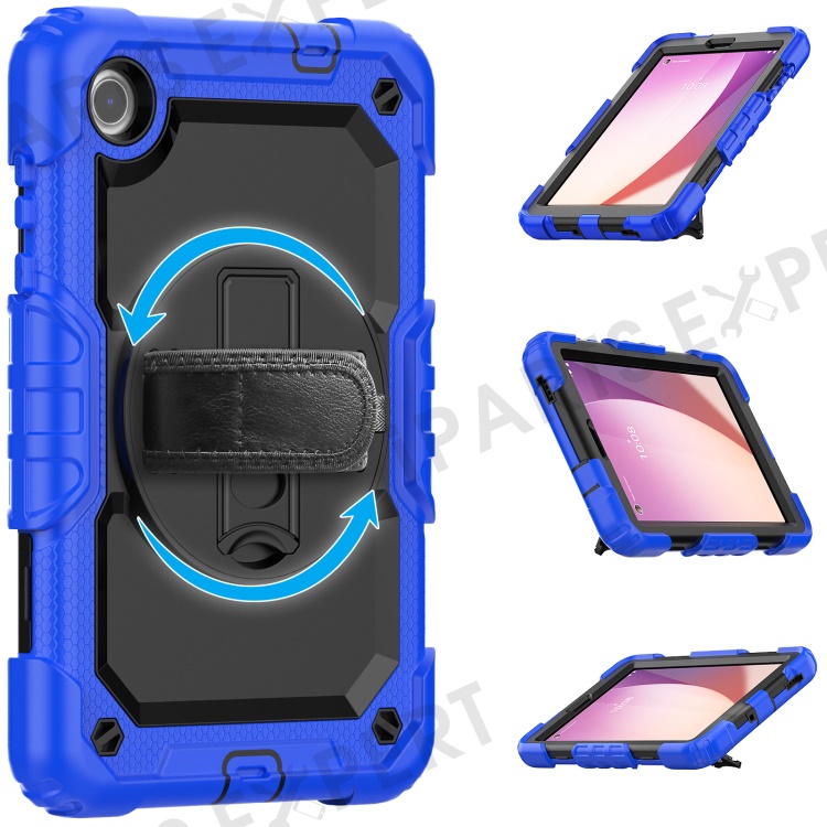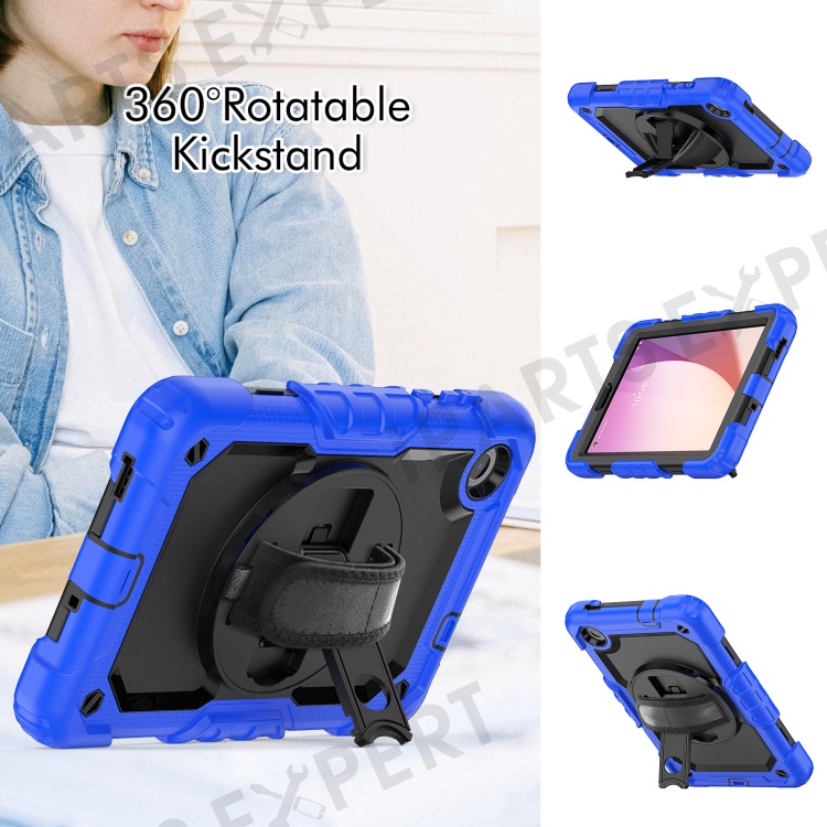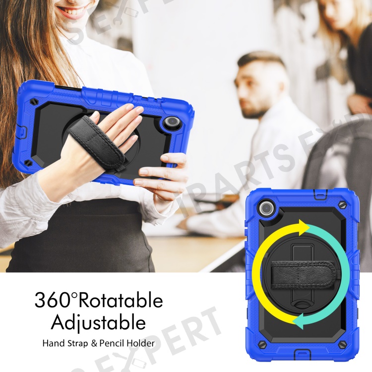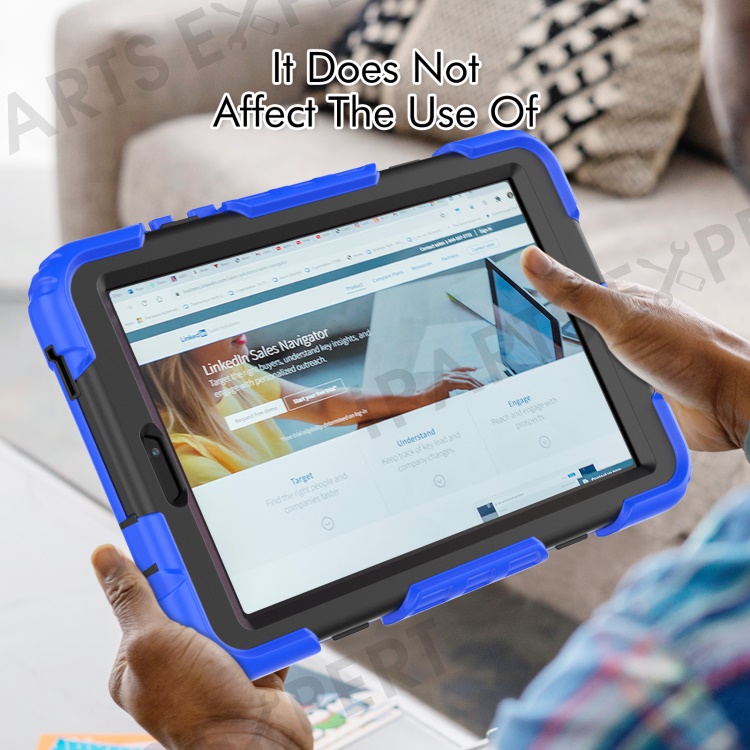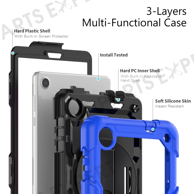 This 3-layers multifunction tablet case is combined with hard PC frame with built-in PET screen protector, hard PC inner layer with built-in kickstand hand strap, and outer silicone layer. Impact-resistant design and shock-absorbing silicone + PC materials fully cover the back and edges, protecting against accidental drops and falls. The rotary kickstand can free your hands when you're reading, watching, and surfing the internet in your free time. The portable hand grip kickstand is designed for easy carrying.