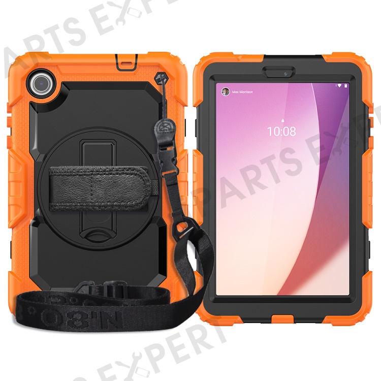 For Lenovo Tab M8 (4th Gen) 2024 TB-301XU / M8 (4th Gen) 2023 TB-300FU Silicone+PC Case Kickstand with PET Screen Film - Orange