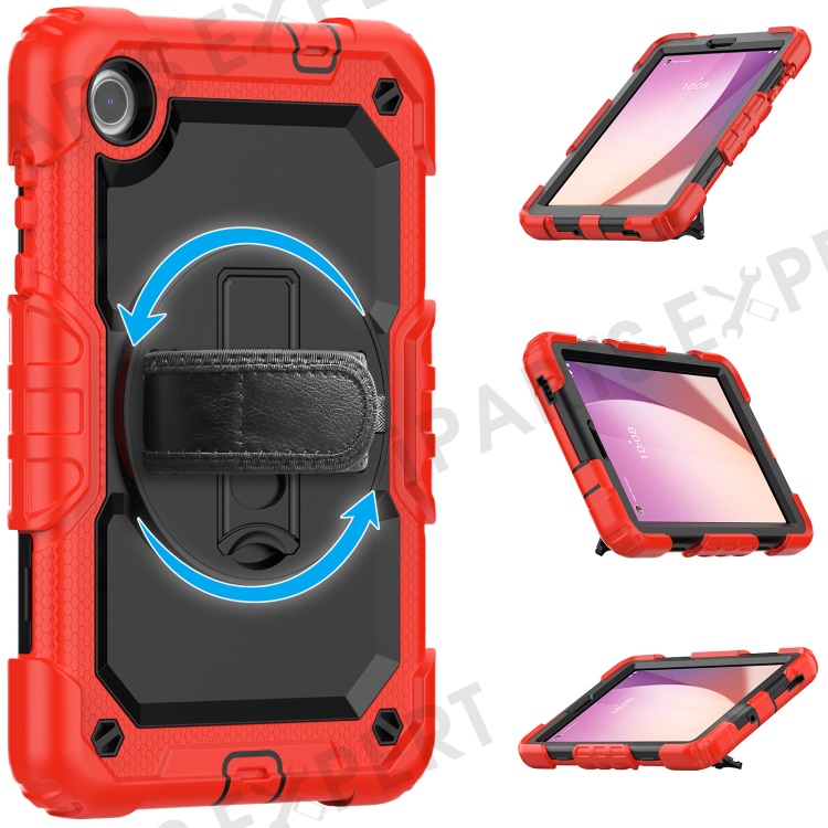 This 3-layers multifunction tablet case is combined with hard PC frame with built-in PET screen protector, hard PC inner layer with built-in kickstand hand strap, and outer silicone layer. Impact-resistant design and shock-absorbing silicone + PC materials fully cover the back and edges, protecting against accidental drops and falls. The rotary kickstand can free your hands when you're reading, watching, and surfing the internet in your free time. The portable hand grip kickstand is designed for easy carrying.