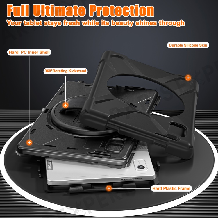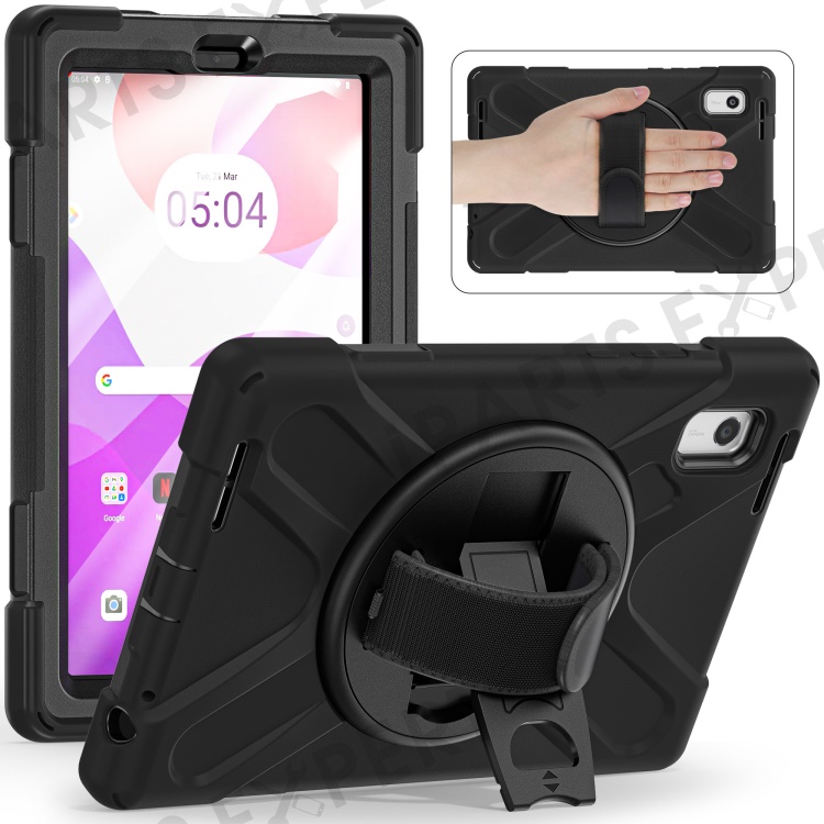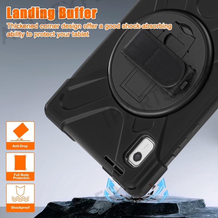 For Lenovo Tab M9 TB-310FU (2023) Tablet Case Kickstand PC+Silicone 360 Degree Rotation Tablet Cover with Hand Strap - Black
