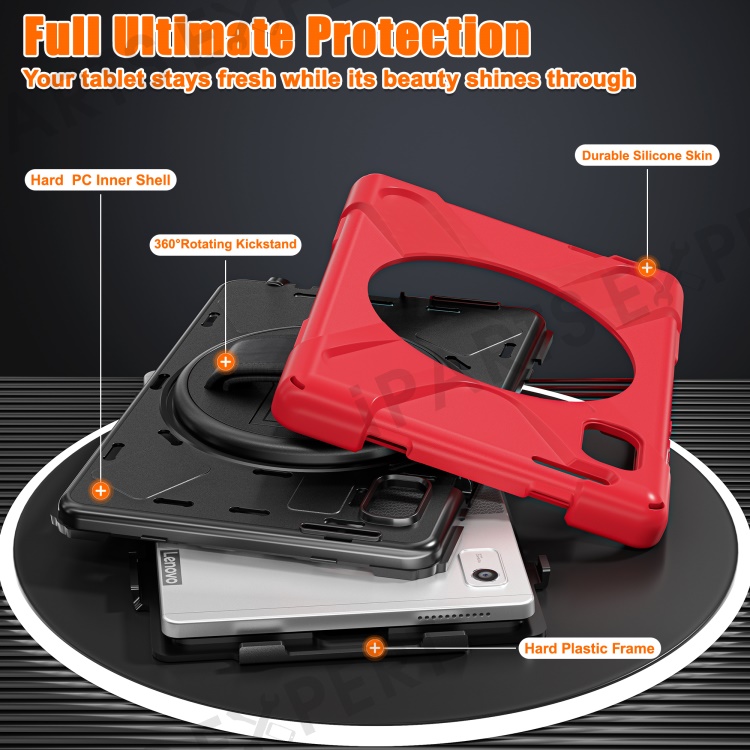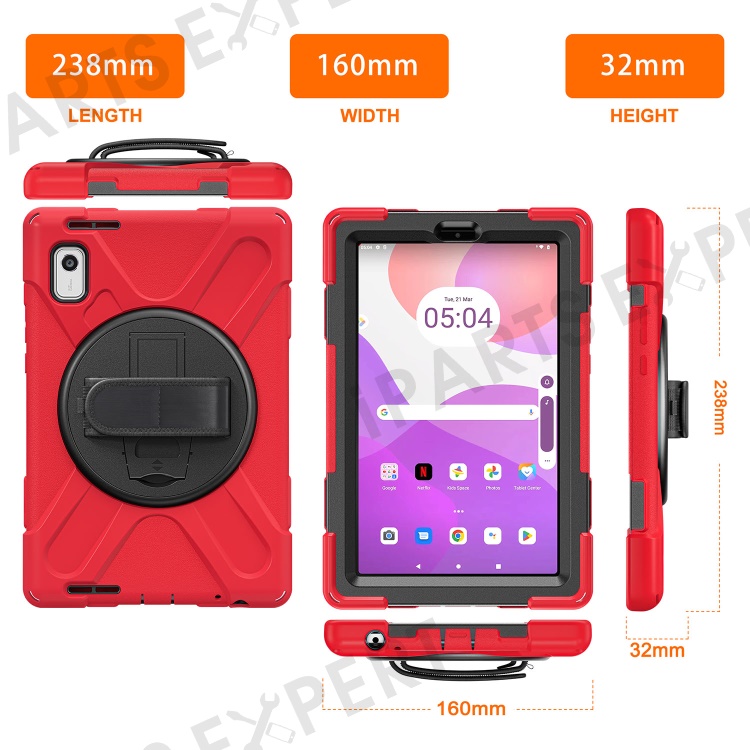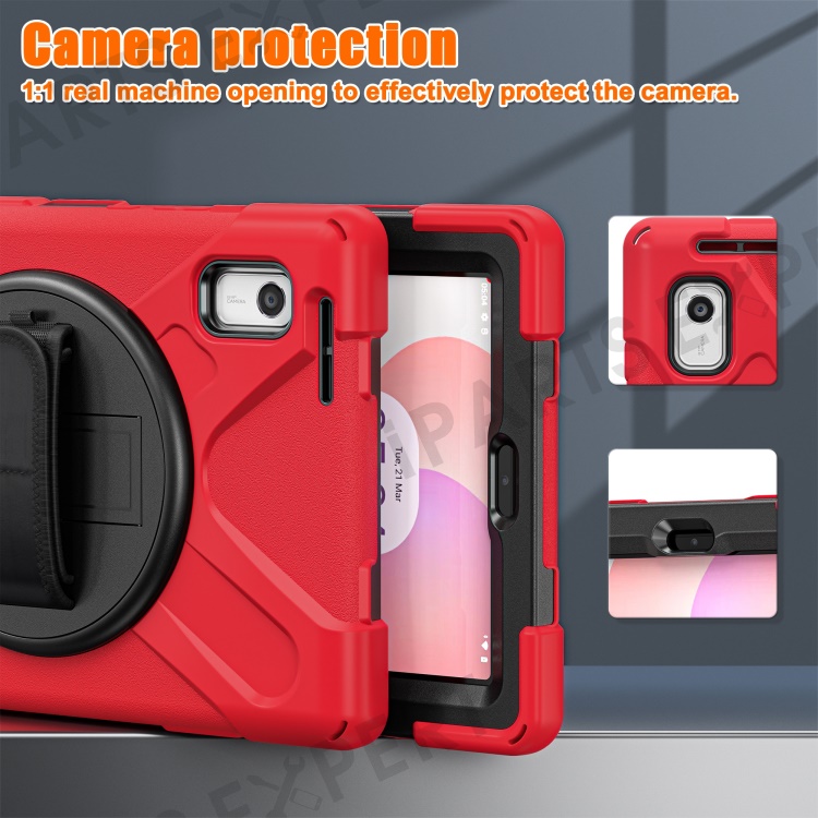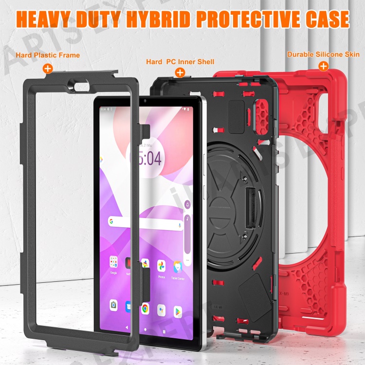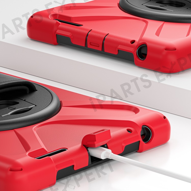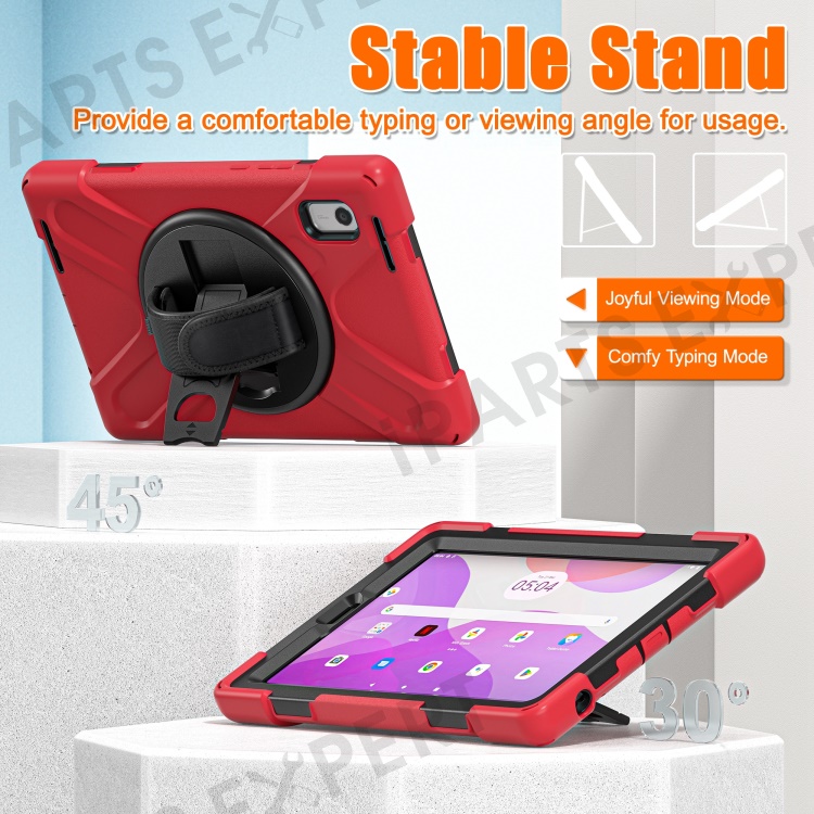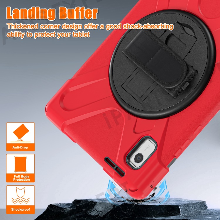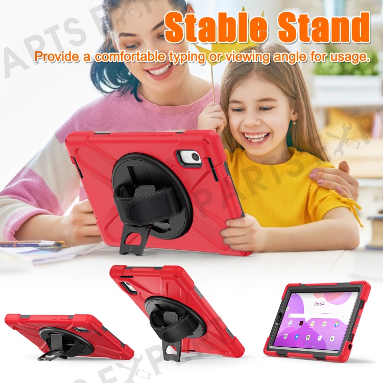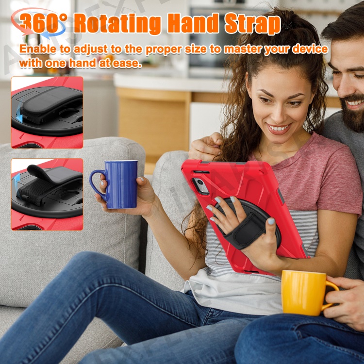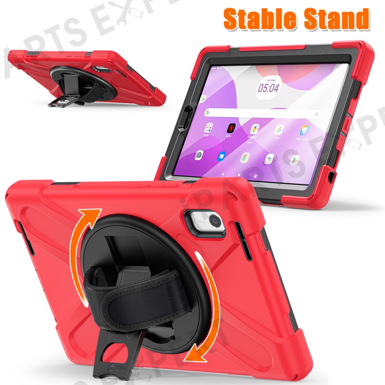 For Lenovo Tab M9 TB-310FU (2023) Tablet Case Kickstand PC+Silicone 360 Degree Rotation Tablet Cover with Hand Strap - Red