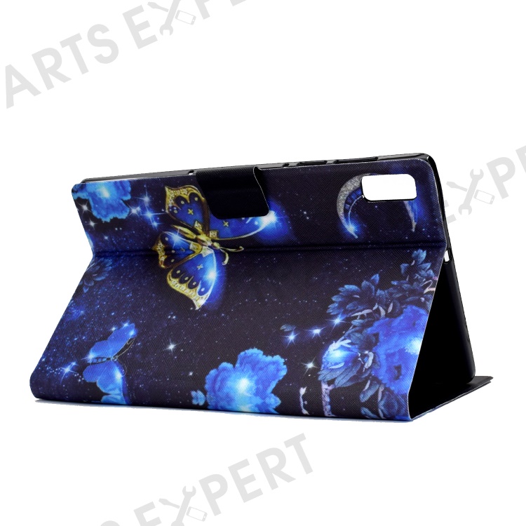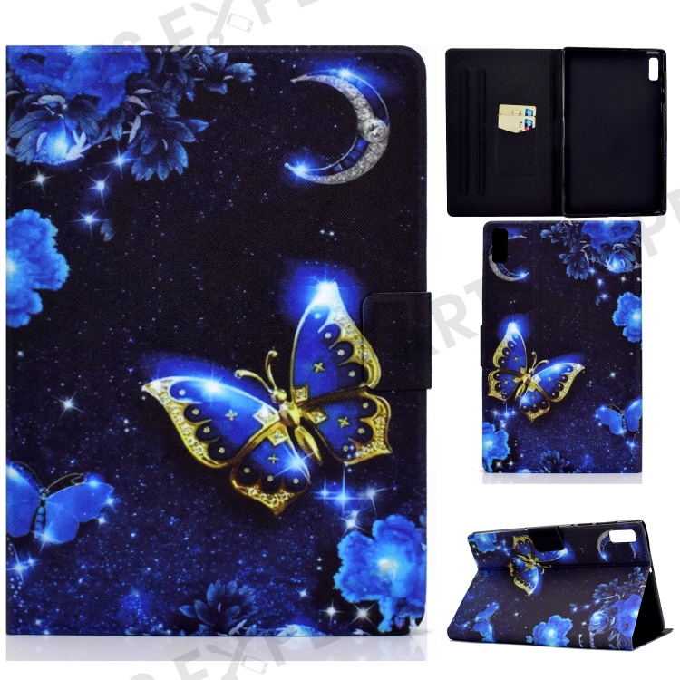 For Lenovo Tab P11 Gen 2 TB-350 Leather Stand Tablet Case A4 Pattern Printing Card Holder Protective Cover - Blue Butterfly