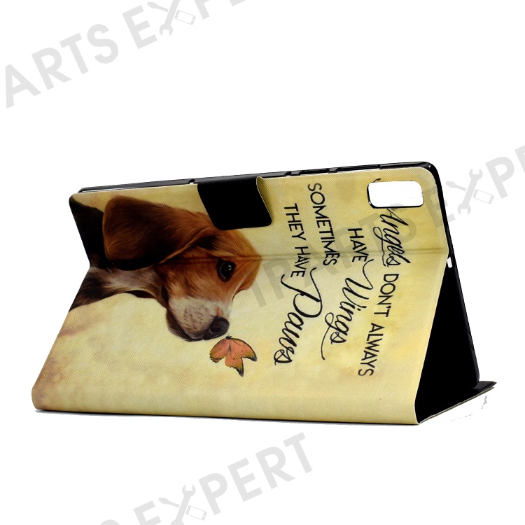 For Lenovo Tab P11 Gen 2 TB-350 Leather Stand Tablet Case A4 Pattern Printing Card Holder Protective Cover - Butterfly and Dog