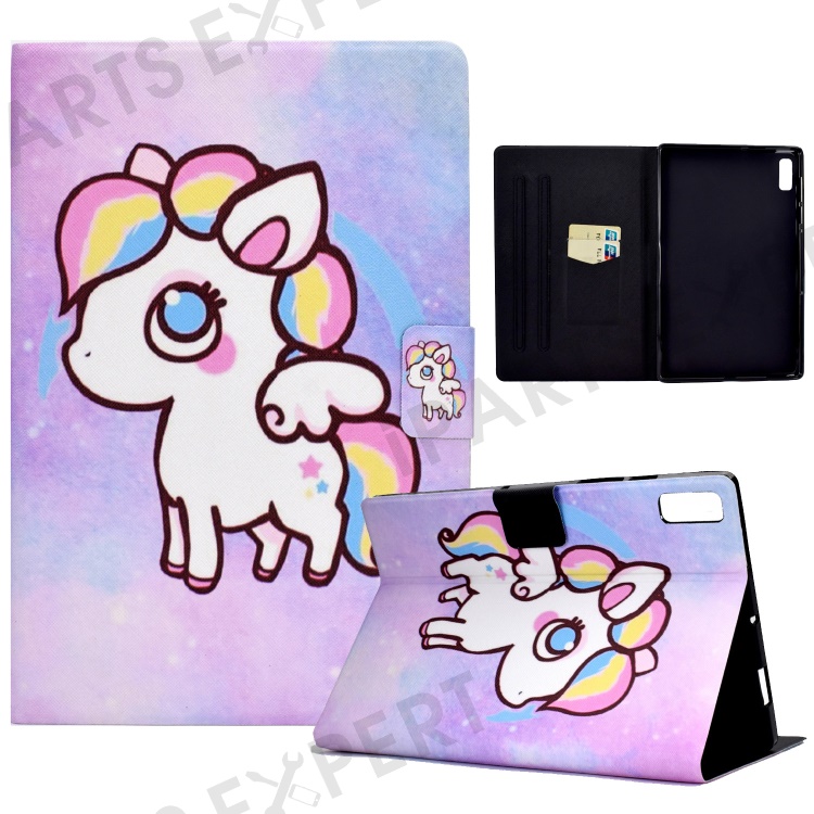 For Lenovo Tab P11 Gen 2 TB-350 Leather Stand Tablet Case A4 Pattern Printing Card Holder Protective Cover - Colorful Pony