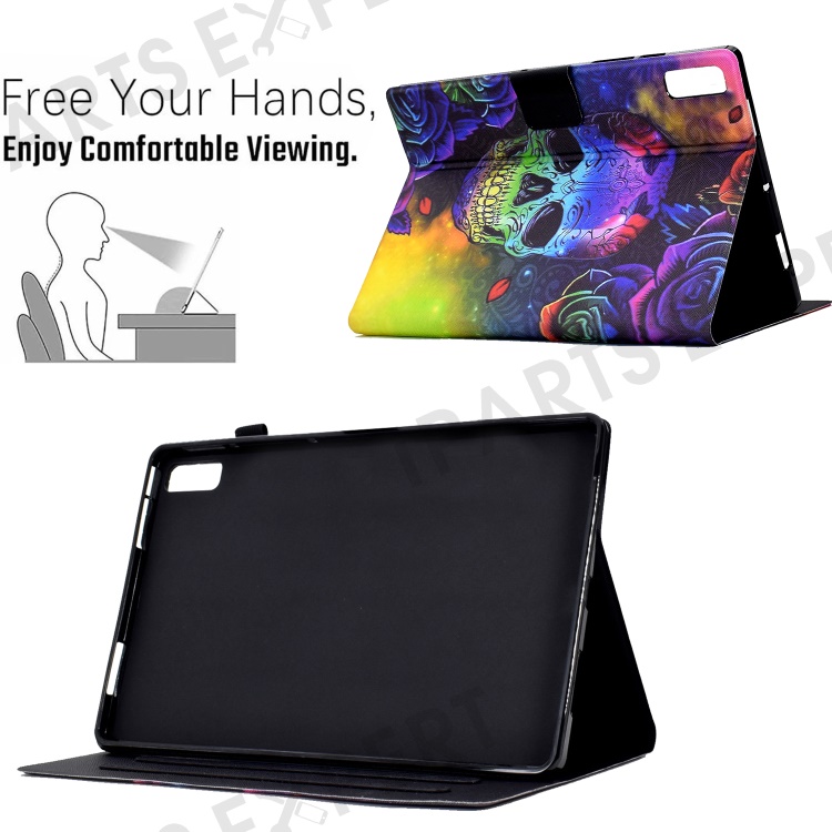 For Lenovo Tab P11 Gen 2 TB-350 Leather Stand Tablet Case A4 Pattern Printing Card Holder Protective Cover - Skull