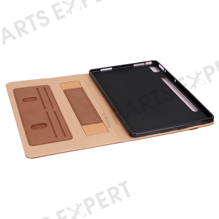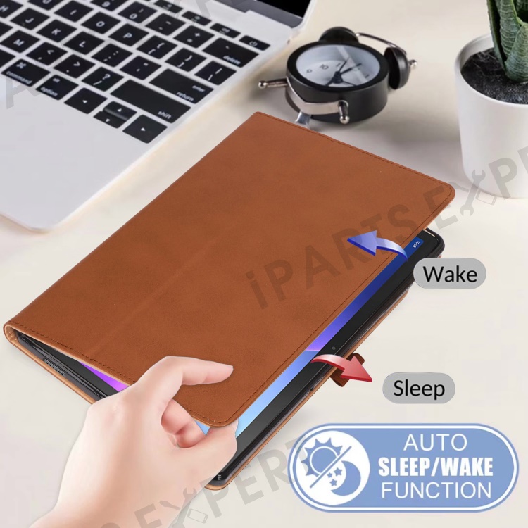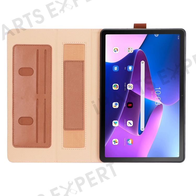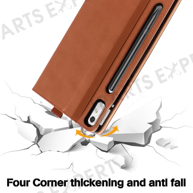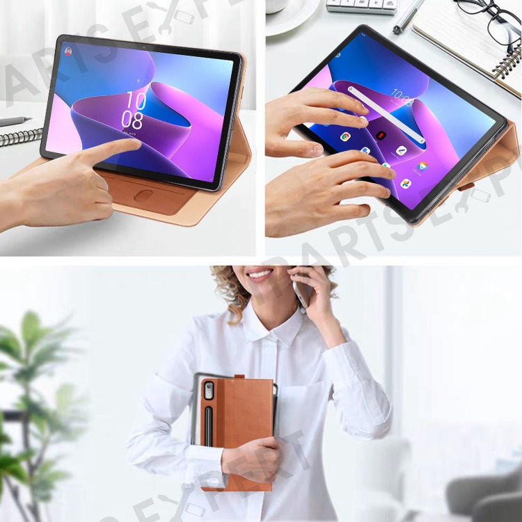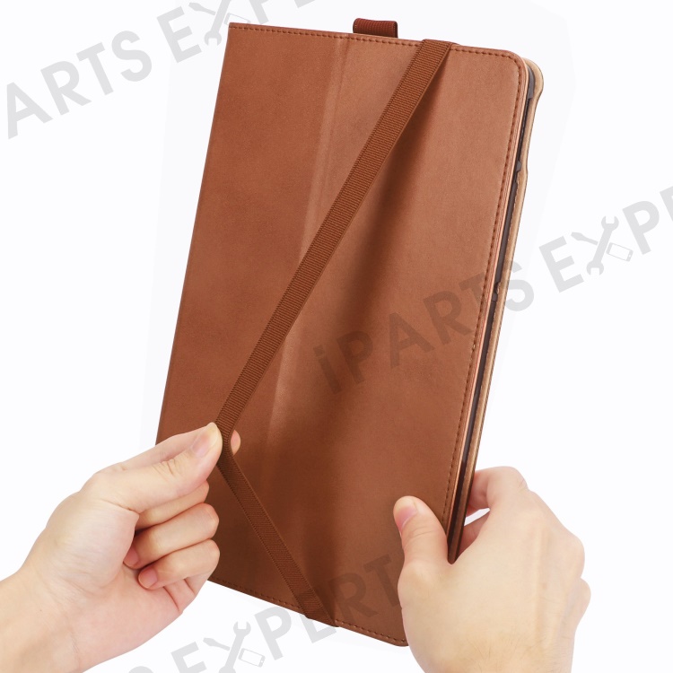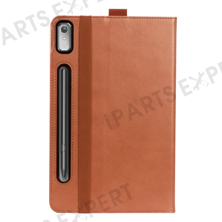 For Lenovo Tab P11 Pro Gen 2 Business Style PU Leather Tablet Case Card Holder Foldable Stand Cover with Hand Strap and Elastic Band - Brown