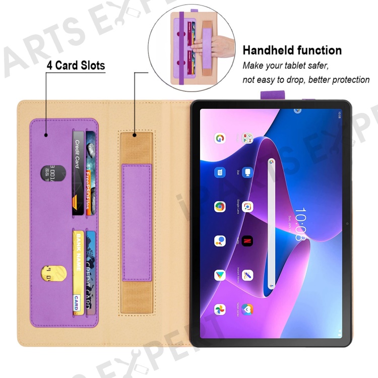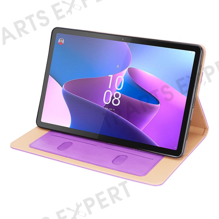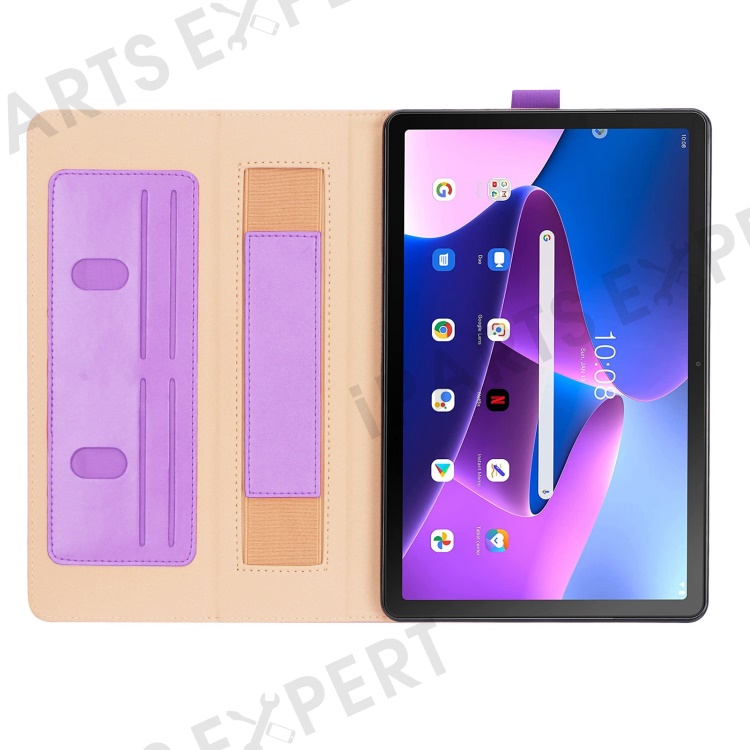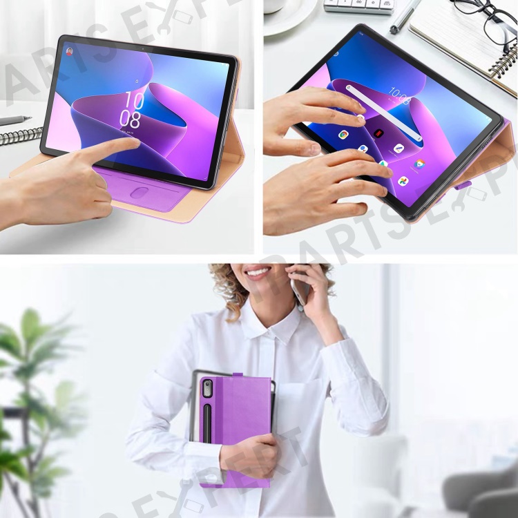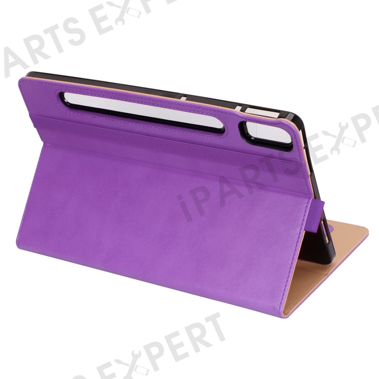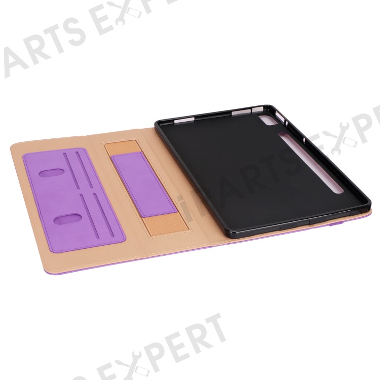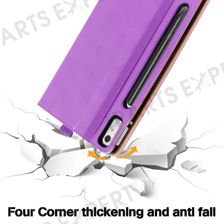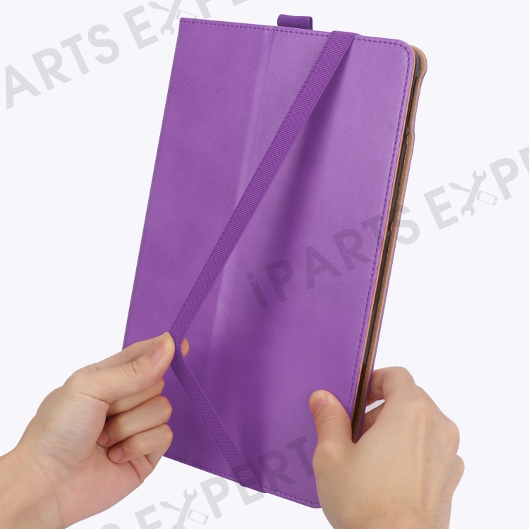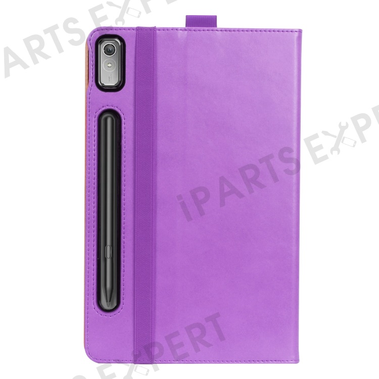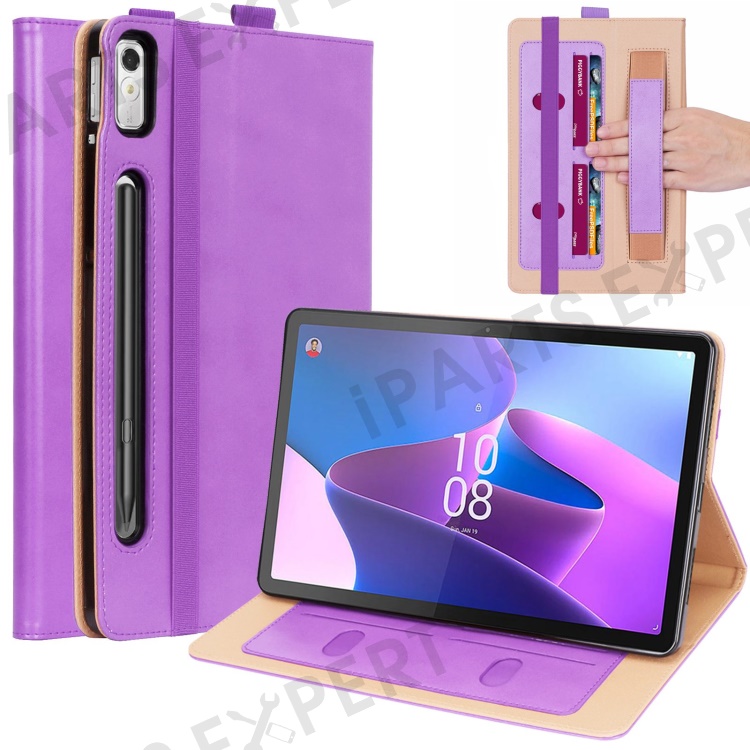 For Lenovo Tab P11 Pro Gen 2 Business Style PU Leather Tablet Case Card Holder Foldable Stand Cover with Hand Strap and Elastic Band - Purple