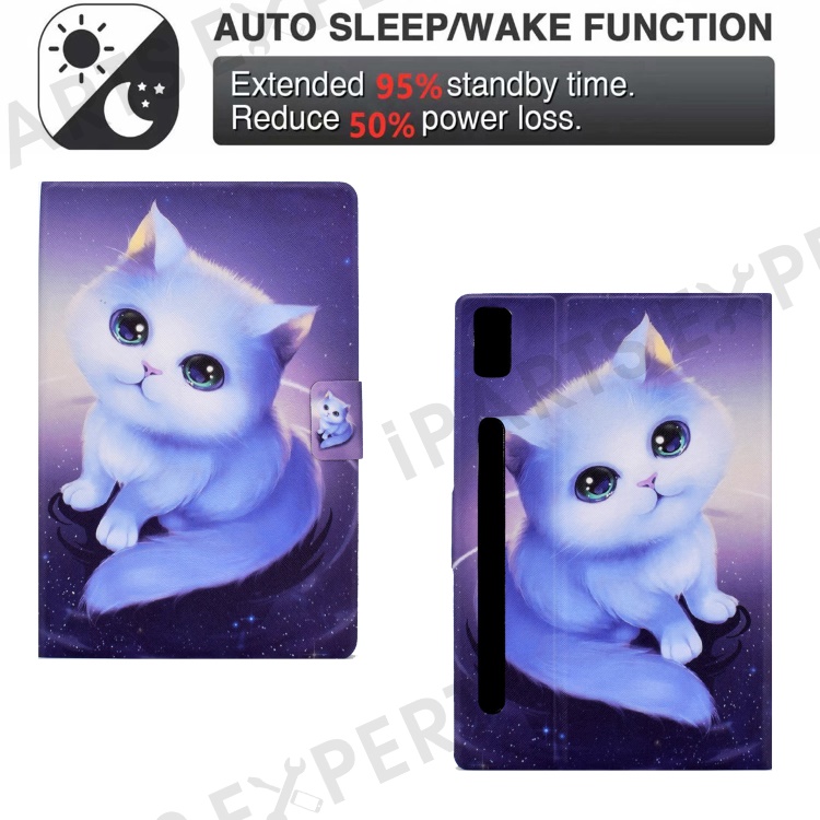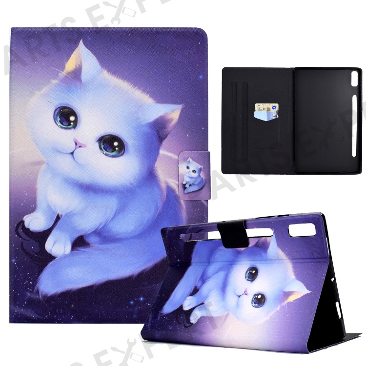 For Lenovo Tab P11 Pro Gen 2 Flip Leather Tablet Case A4 Pattern Printing Cover with Card Holder - Cat