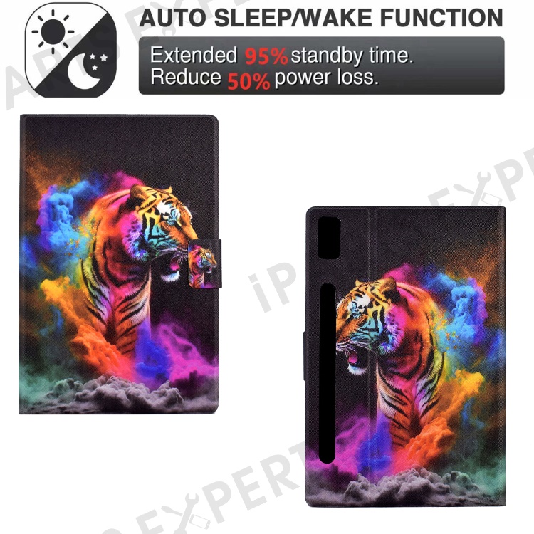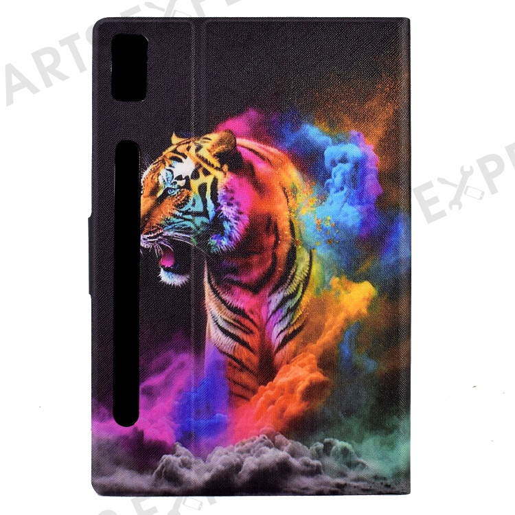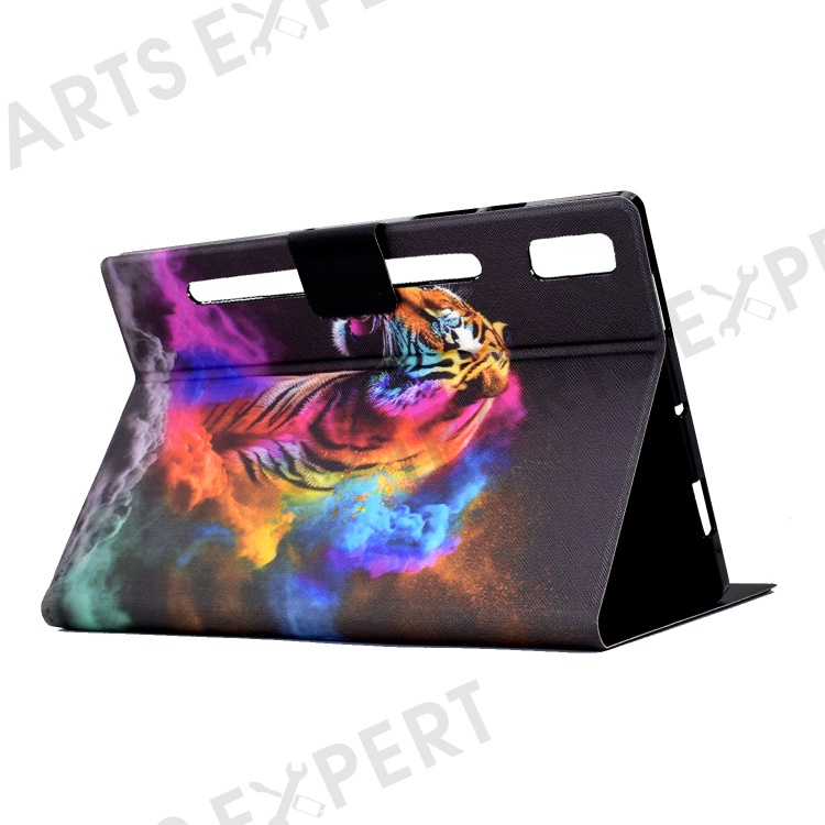 For Lenovo Tab P11 Pro Gen 2 Flip Leather Tablet Case A4 Pattern Printing Cover with Card Holder - Colorful Tiger