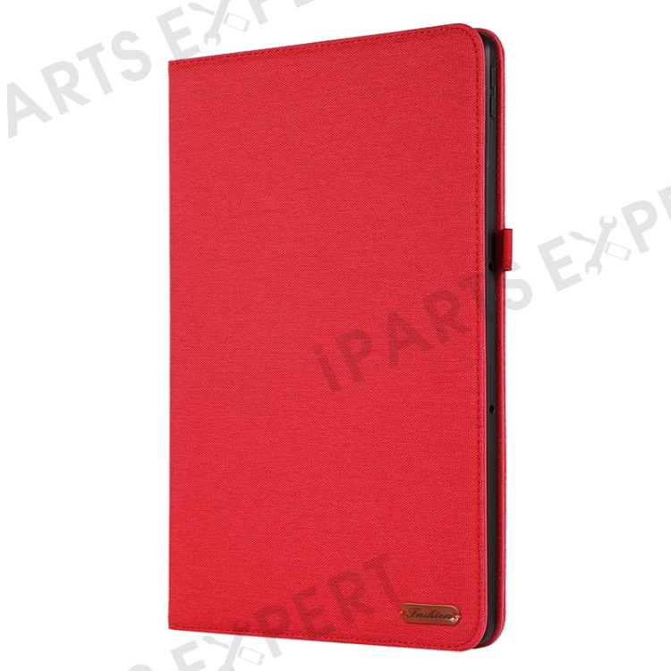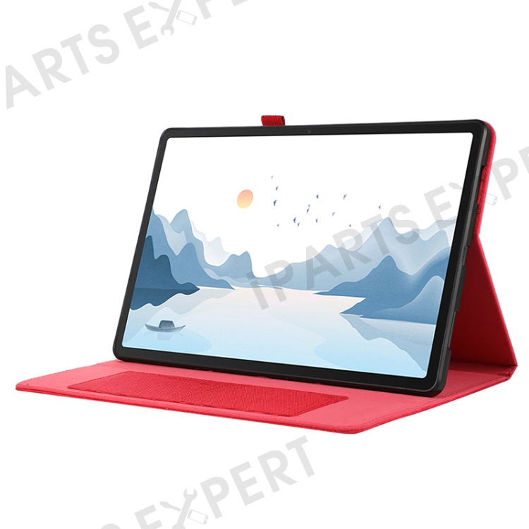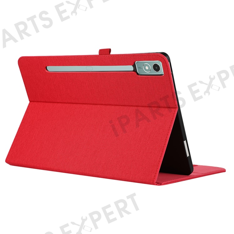 For Lenovo Tab P12 Case Cloth Texture Leather Tablet Cover with Card Holder - Red