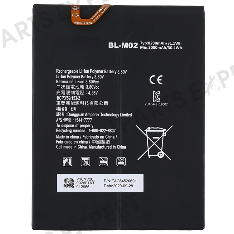 For LG G Pad 5 10.1 3.80V 8000mAh Li-ion Polymer Battery Replacement Part (Encode: BL-M02)