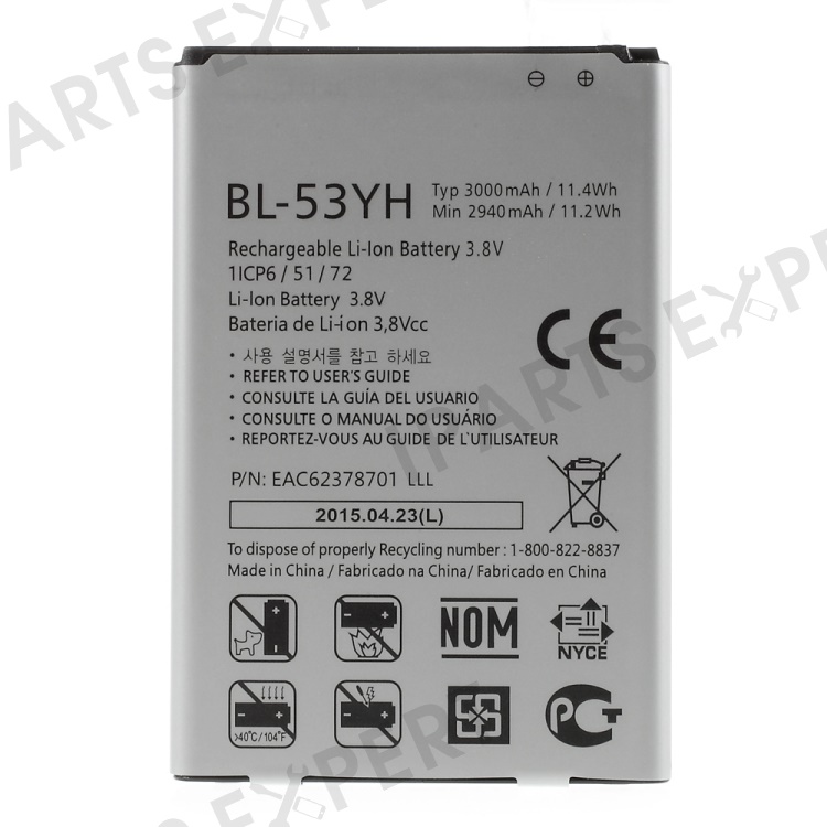For LG G3 3.80V 2940mAh Li-Polymer Battery Replacement Part (Encode: BL-53YH) (without Logo)