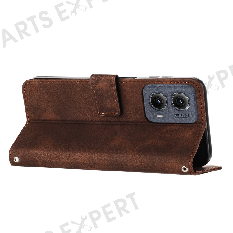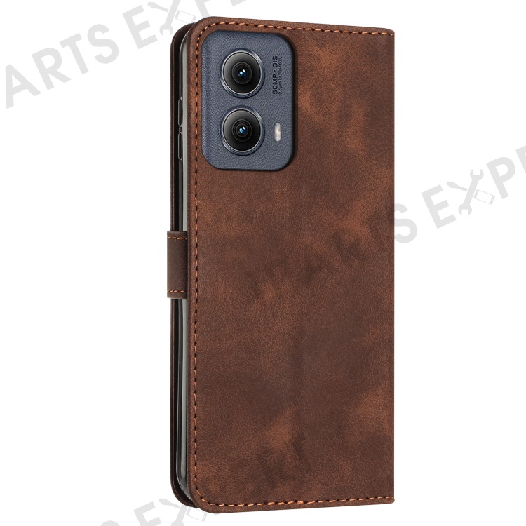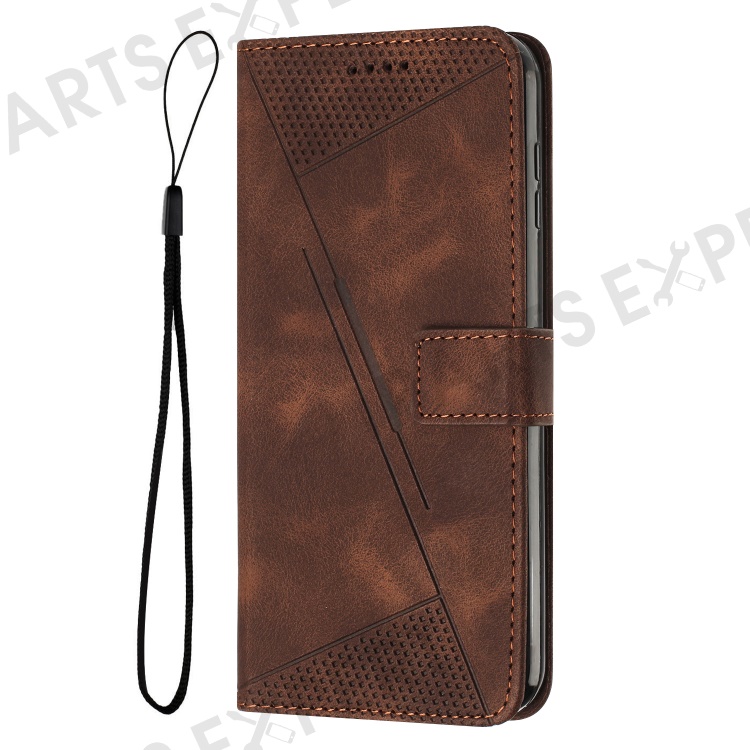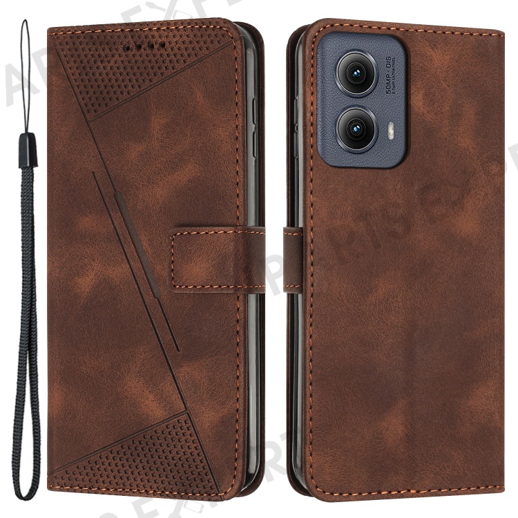 For Motorola Edge (2024) 5G Case Triangle Imprinted PU Leather Wallet Phone Folio Cover - Brown