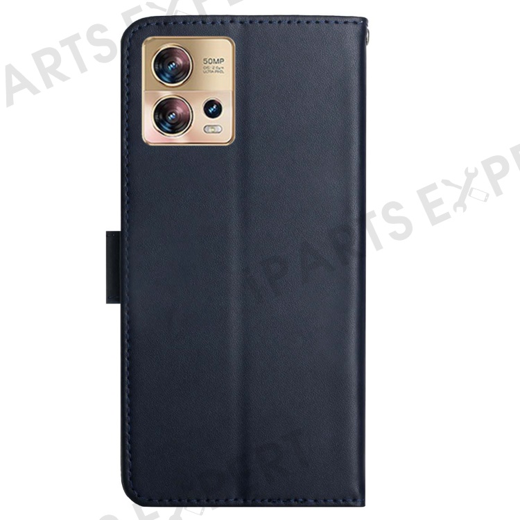 For Motorola Edge 30 Fusion 5G HT02 Nappa Texture Genuine Leather Wallet Case Stand Magnetic Closure Solid Color Cover - Blue