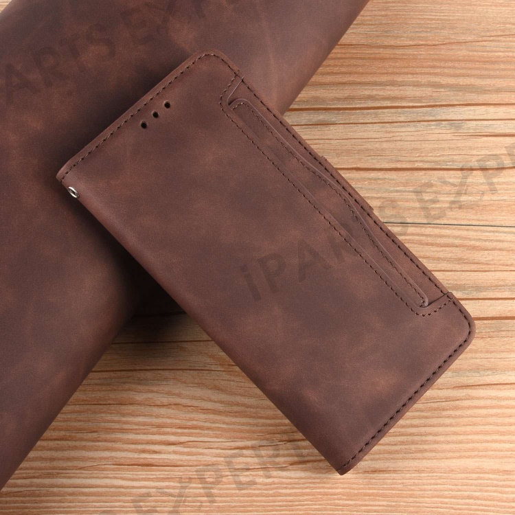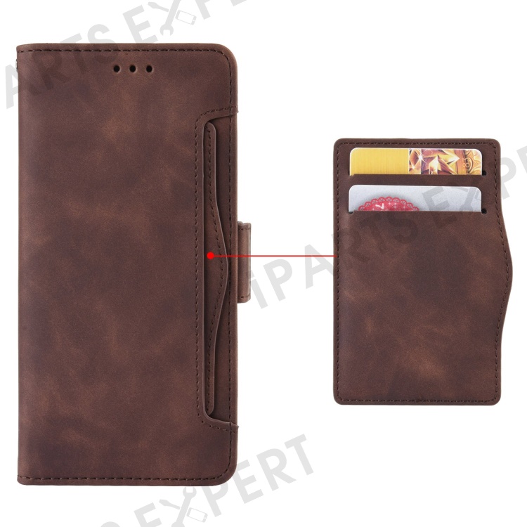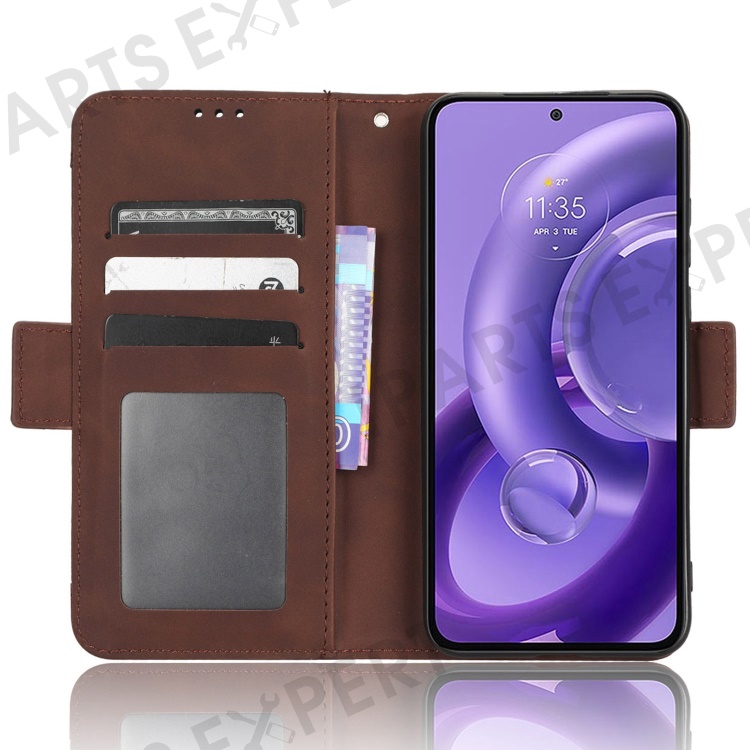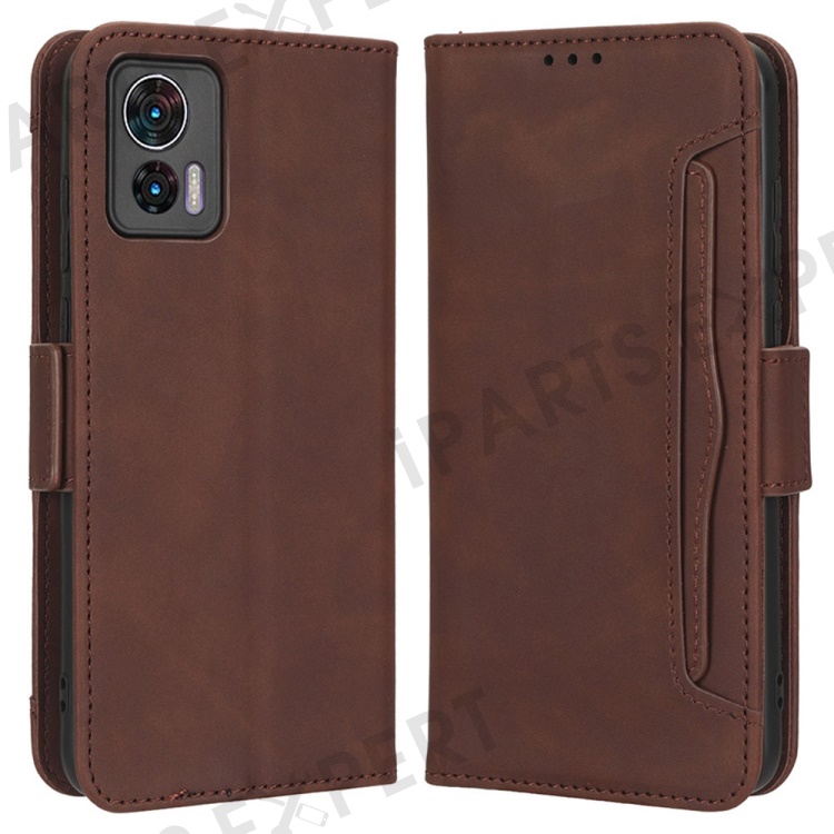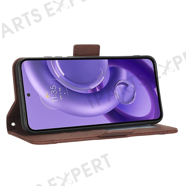 For Motorola Edge 30 Neo 5G PU Leather Multiple Card Slots Cover Side Magnetic Clasp Phone Stand Wallet Case - Brown