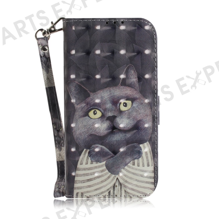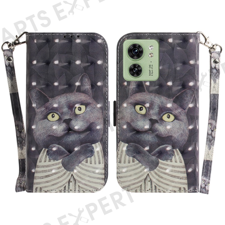 For Motorola Edge 40 5G Wallet Flip Cover PU Leather Printed 3D Pattern Stand Phone Case with Strap - Embracing Cat