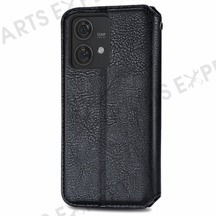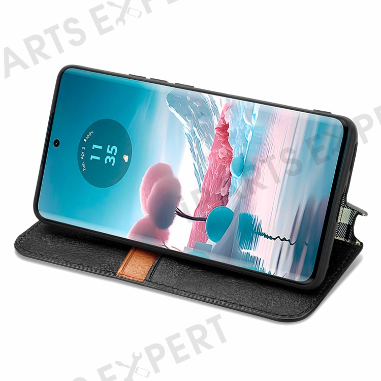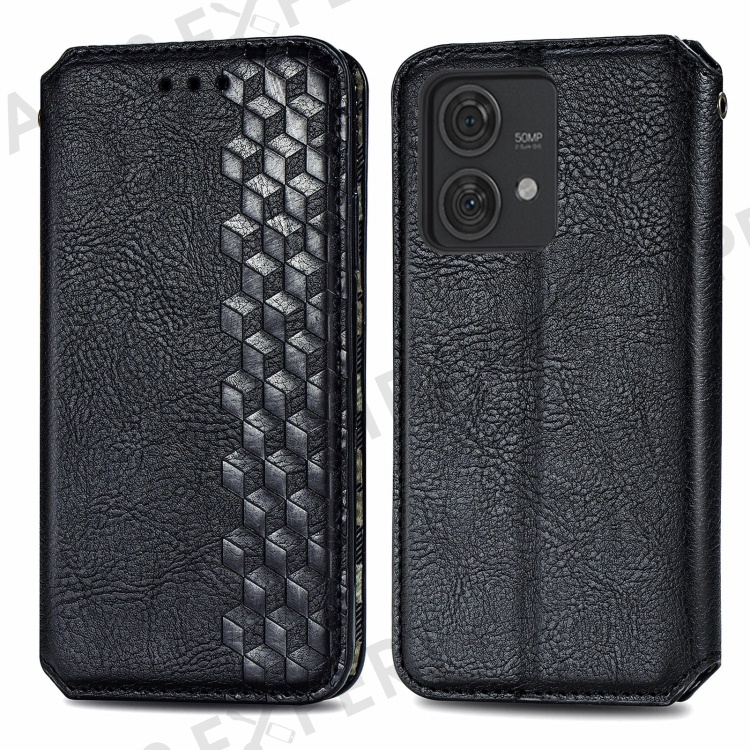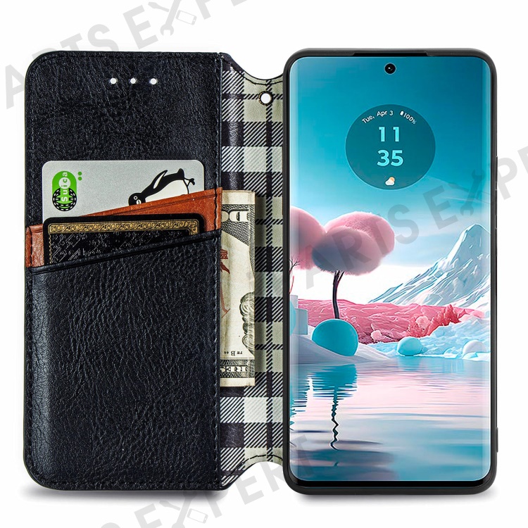 For Motorola Edge 40 Neo 5G PU Leather Case Rhombus Imprint Wallet Stand Phone Cover - Black