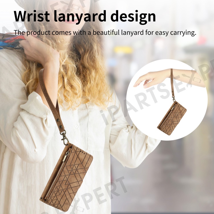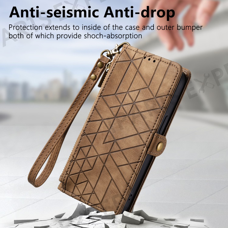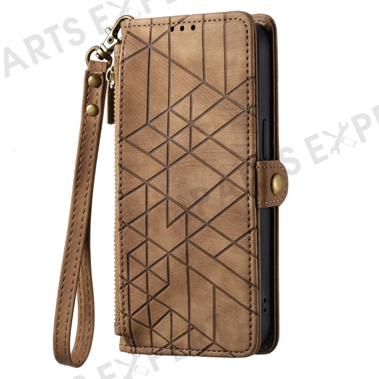 For Motorola Edge 50 Fusion 5G Zipper Wallet Case Geometry Lines Leather Phone Cover with Strap - Brown