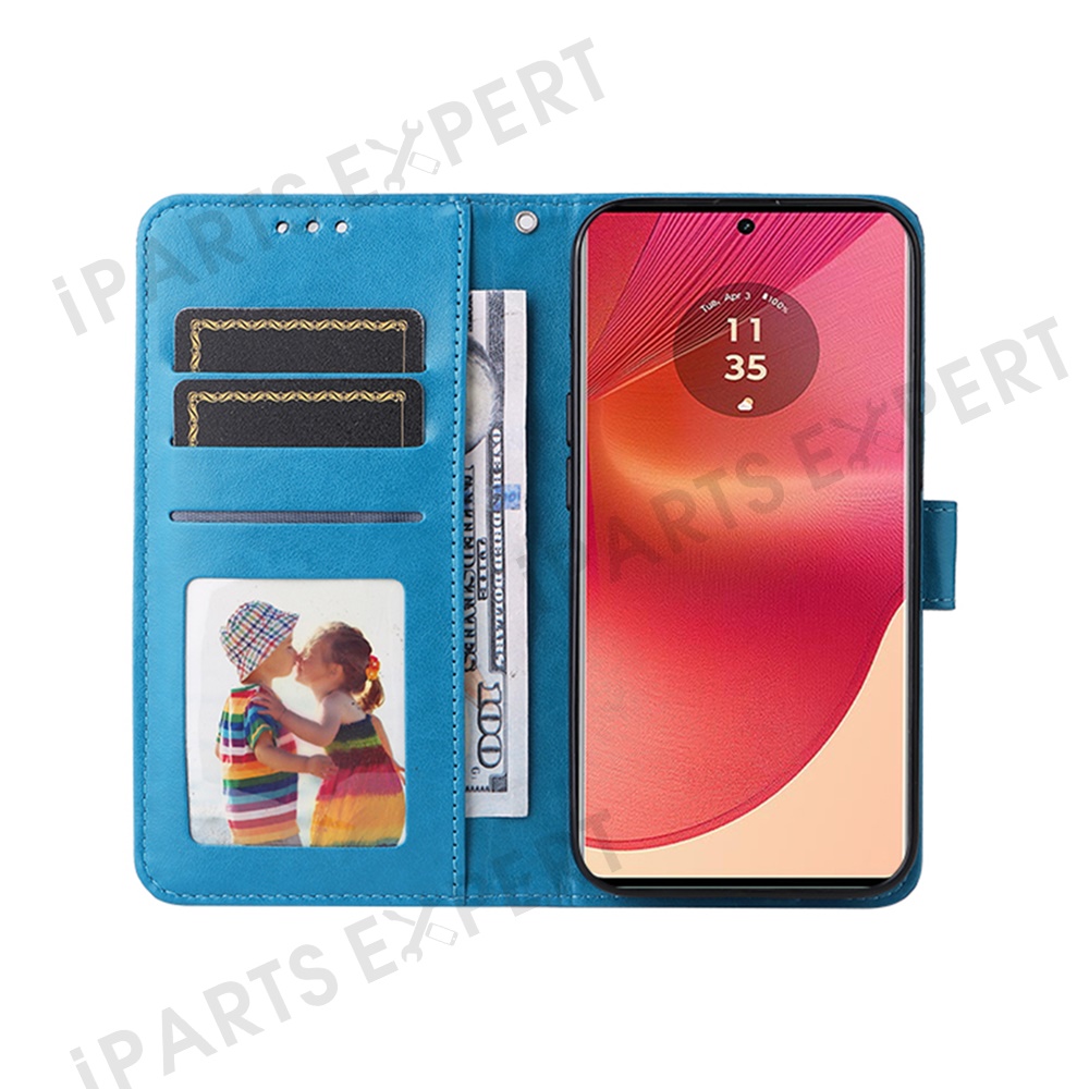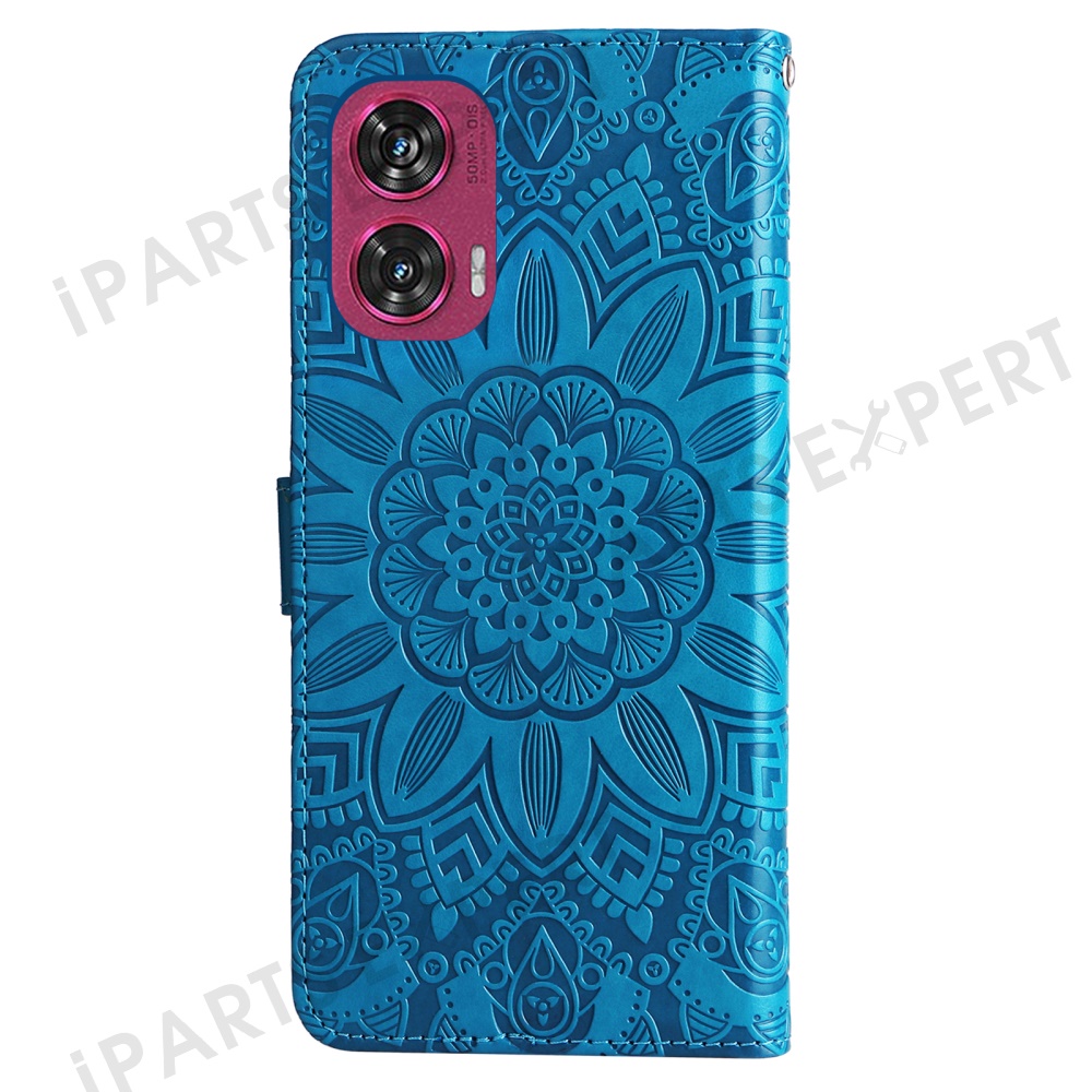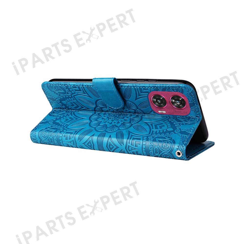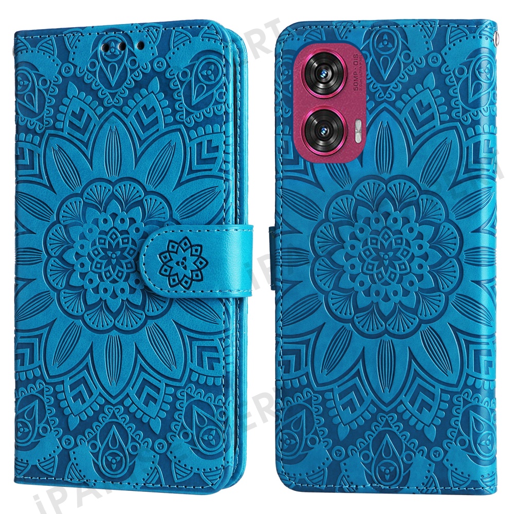 For Motorola Edge 50 Fusion 5G / G96 5G Case Sunflower Imprint Leather Wallet Phone Cover - Blue