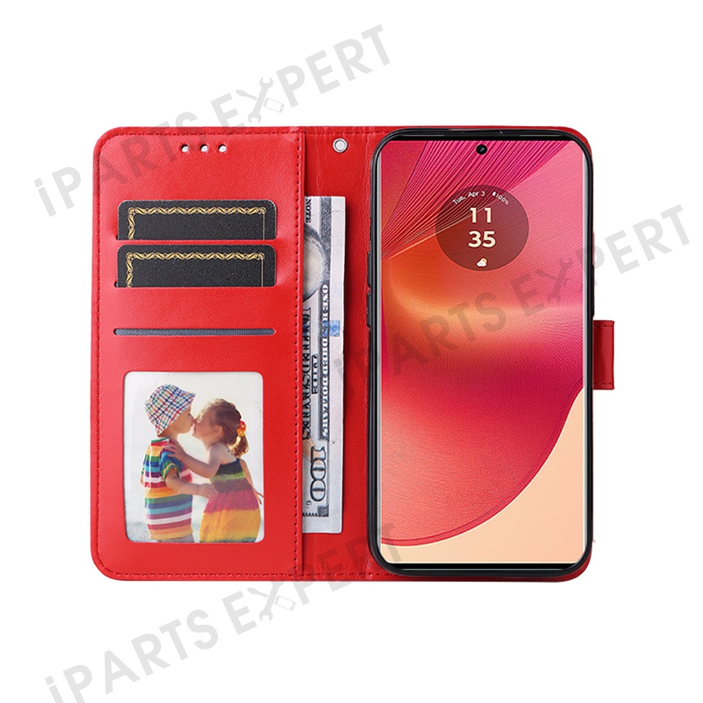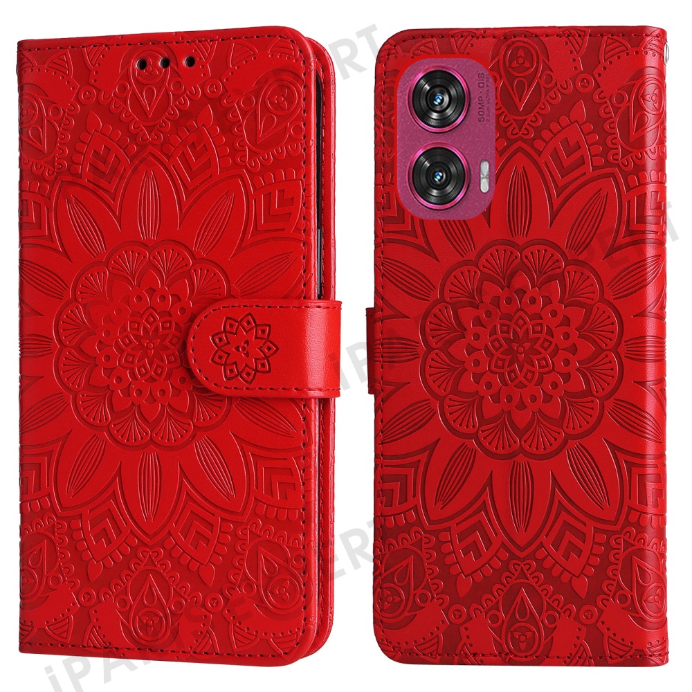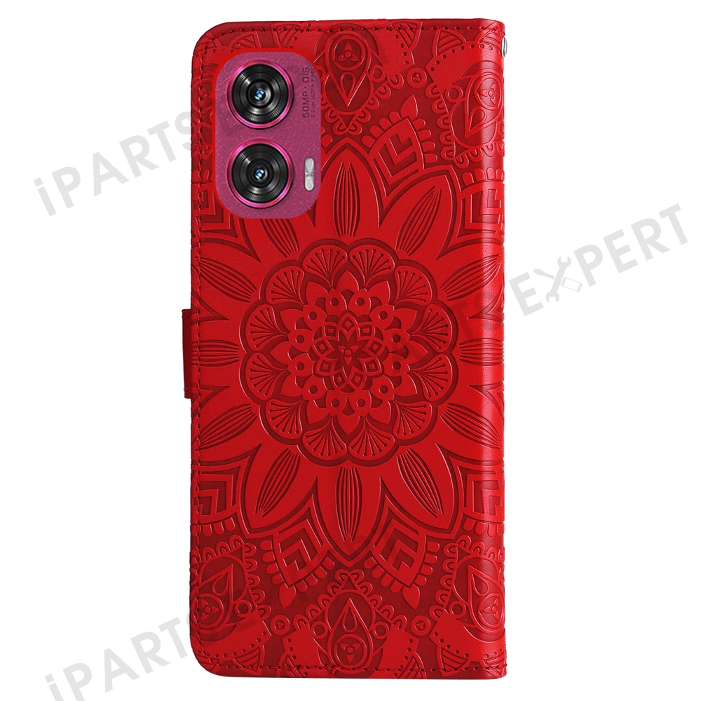 For Motorola Edge 50 Fusion 5G / G96 5G Case Sunflower Imprint Leather Wallet Phone Cover - Red