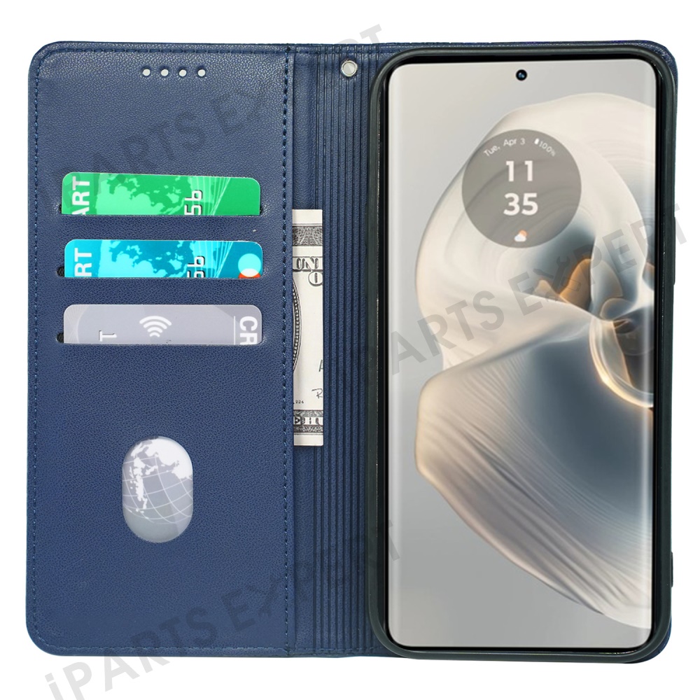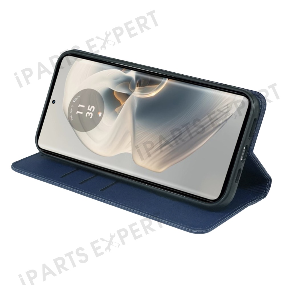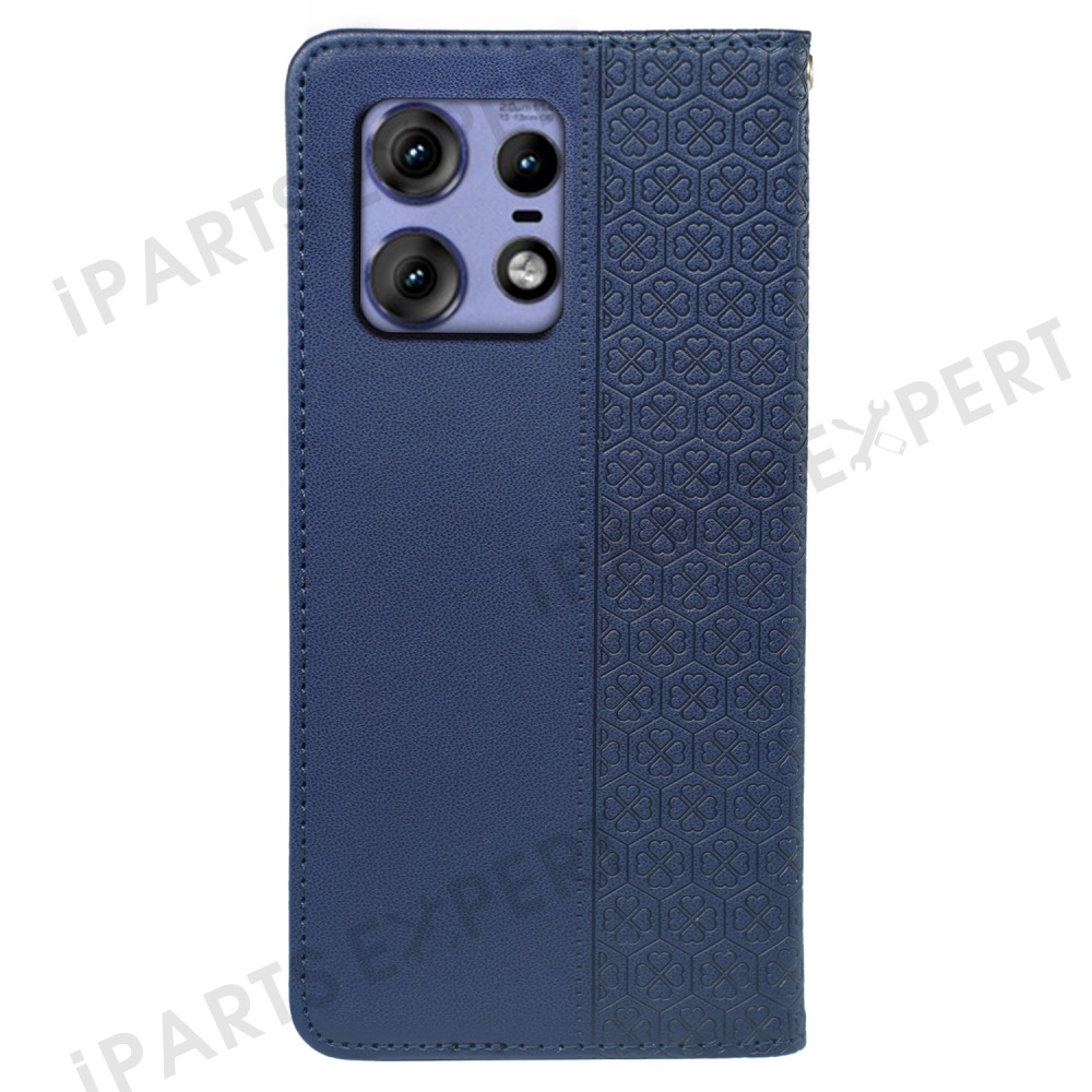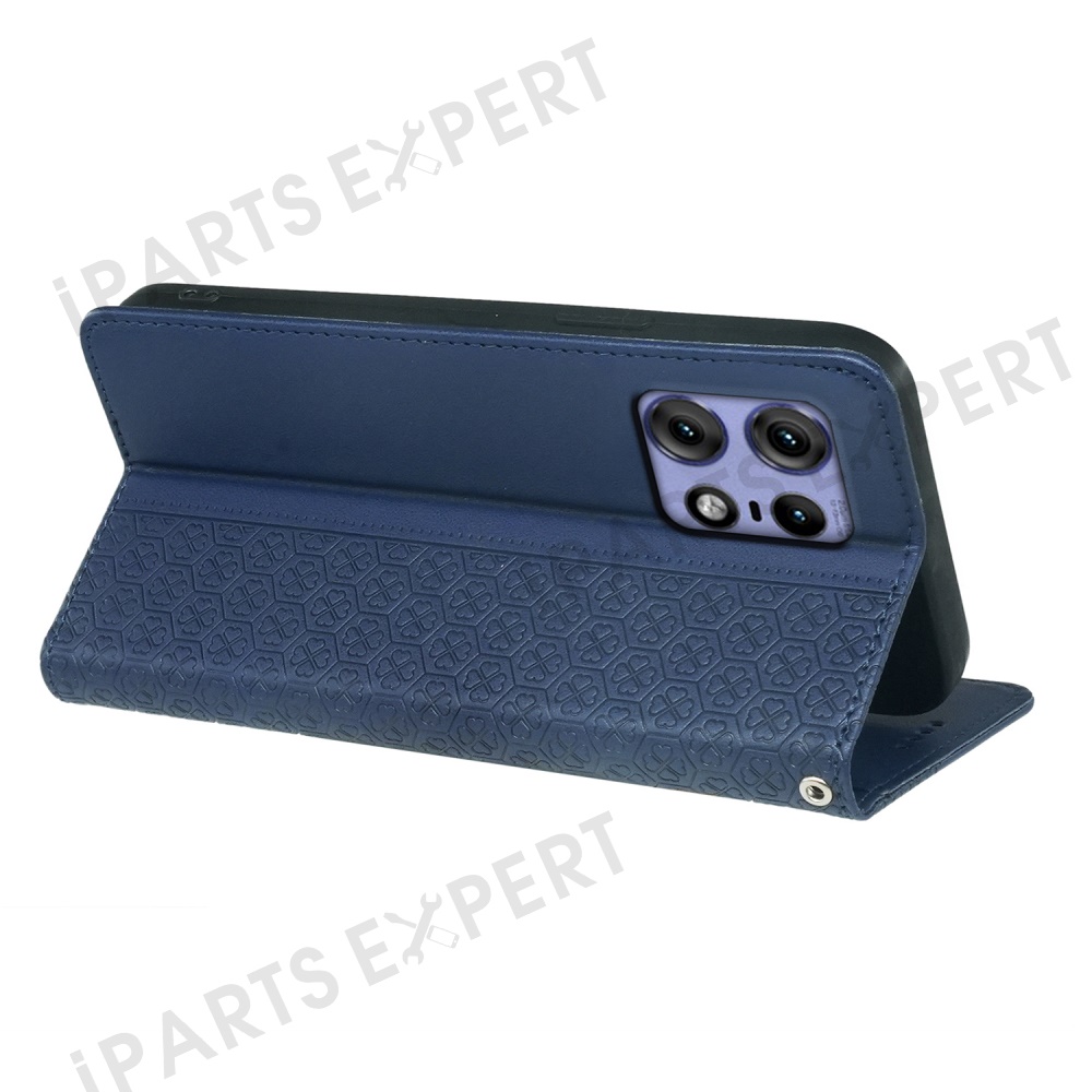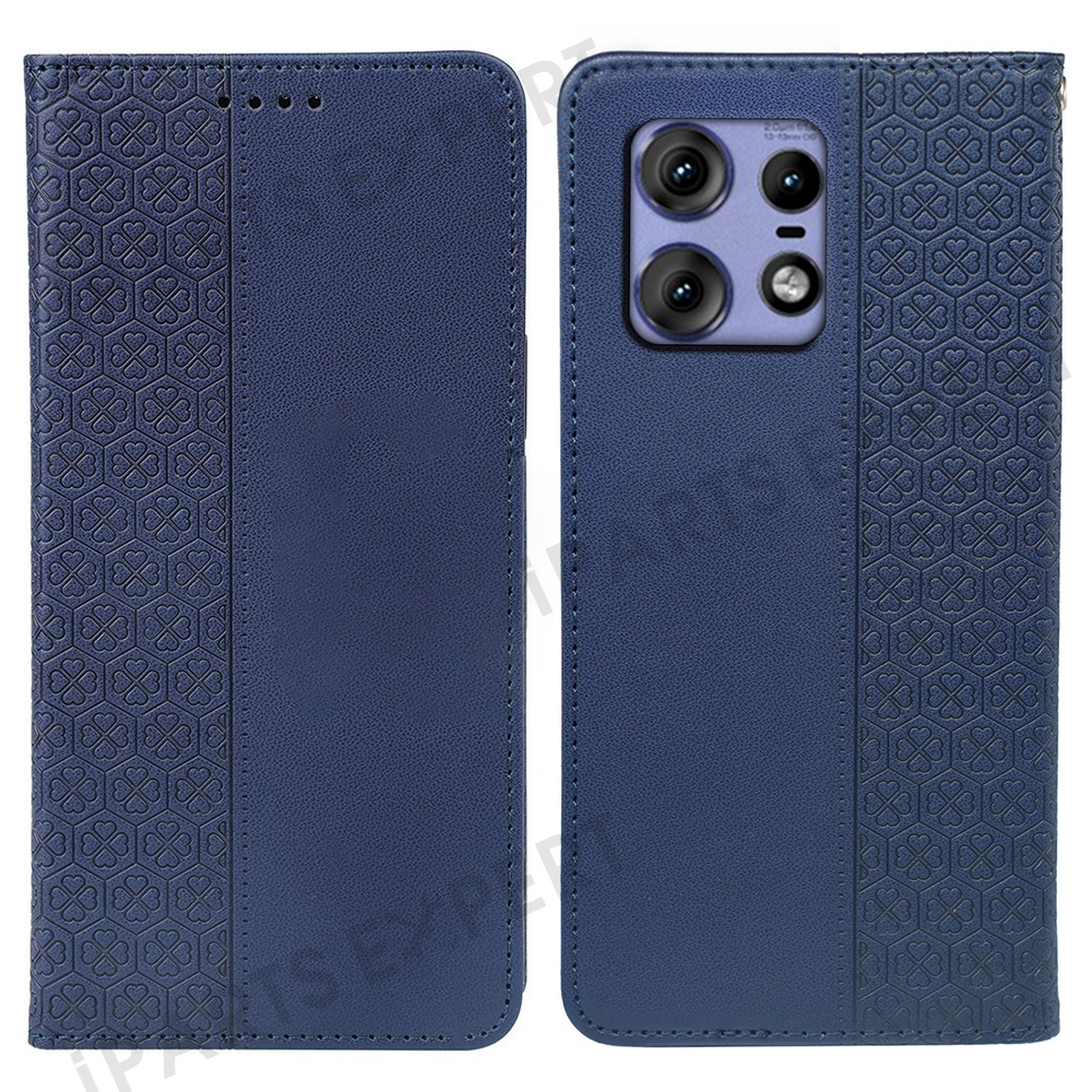 For Motorola Edge 50 Pro 5G Case Four Leaf Clover Leather Flip Phone Cover Stand Wallet - Blue