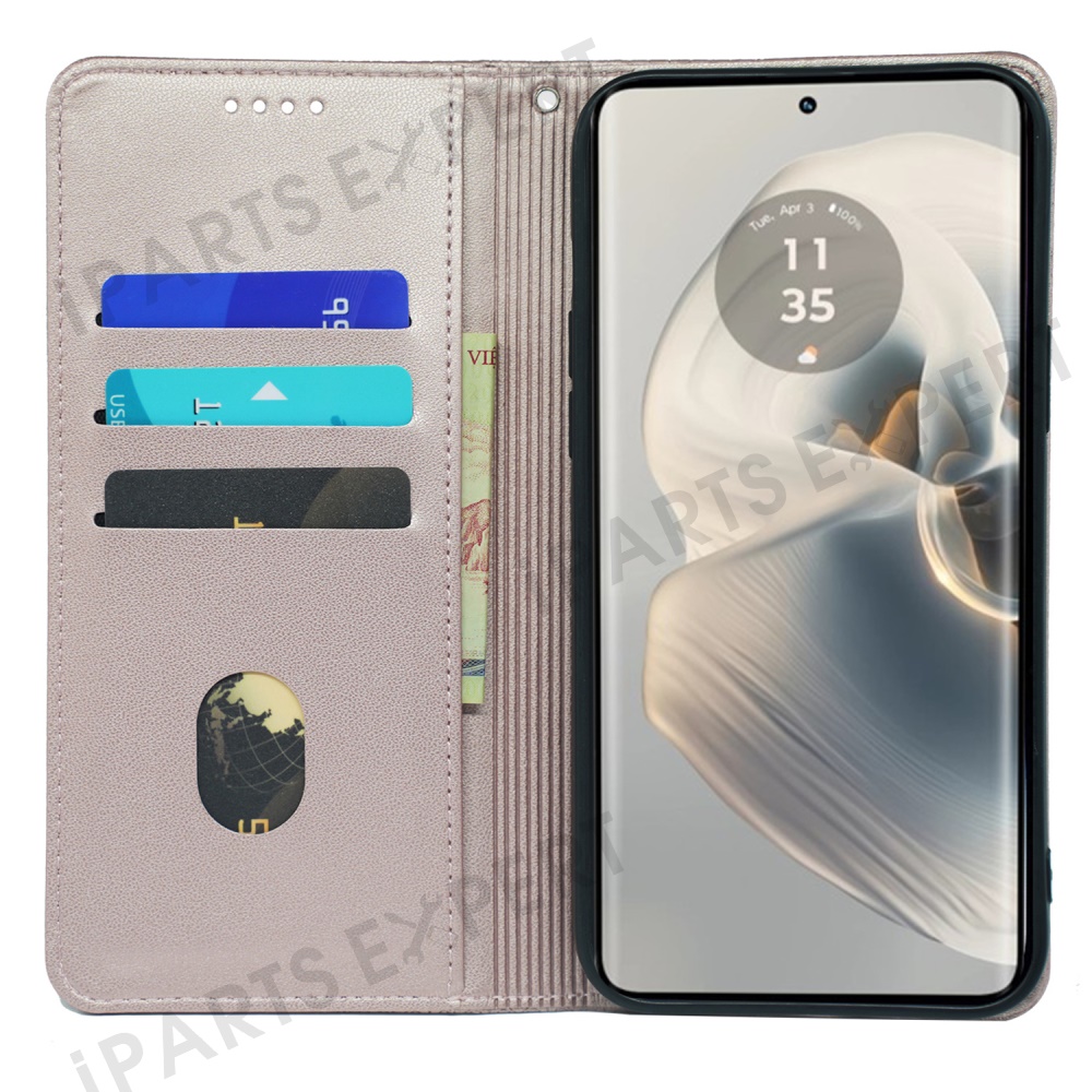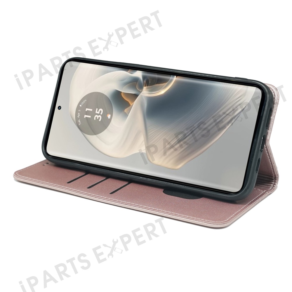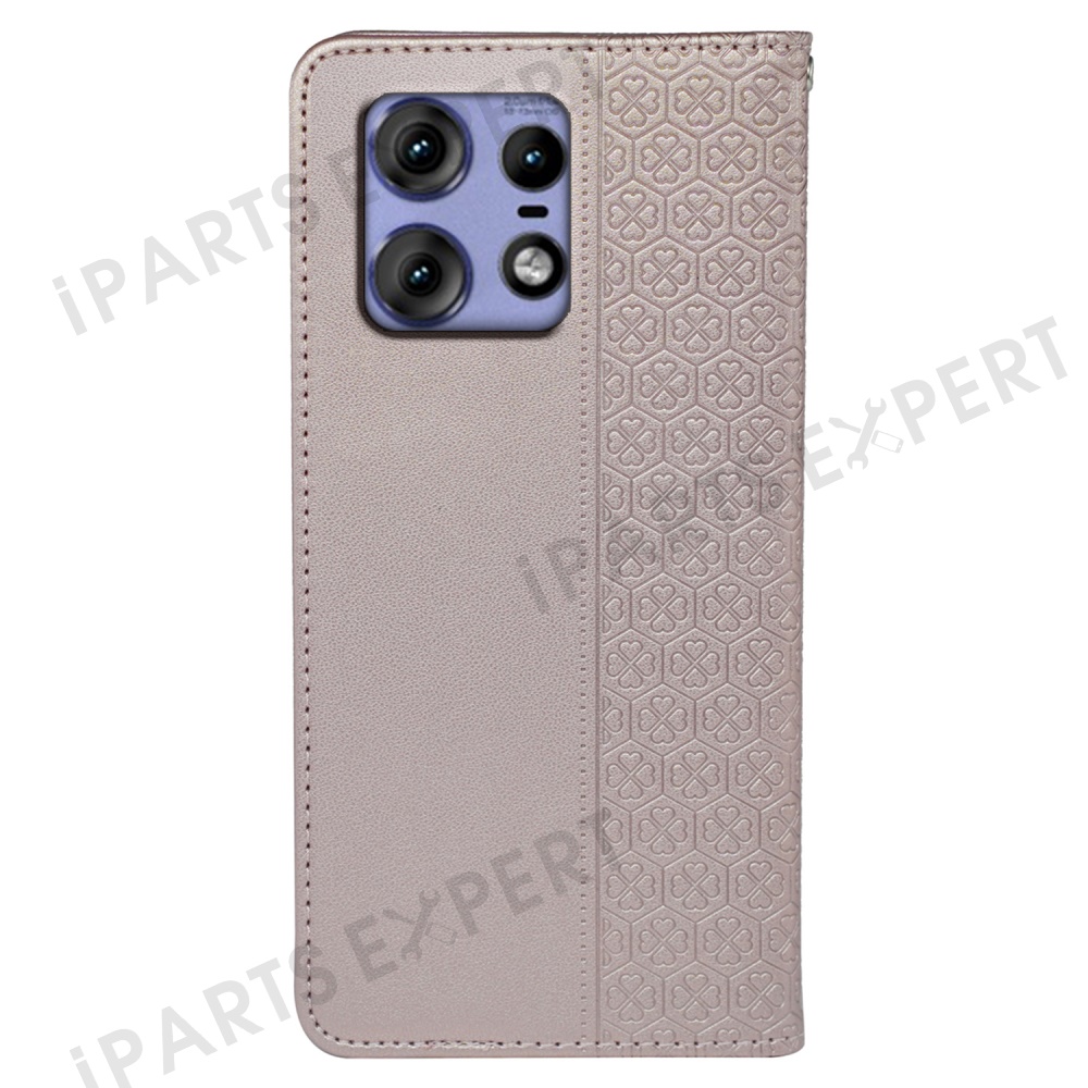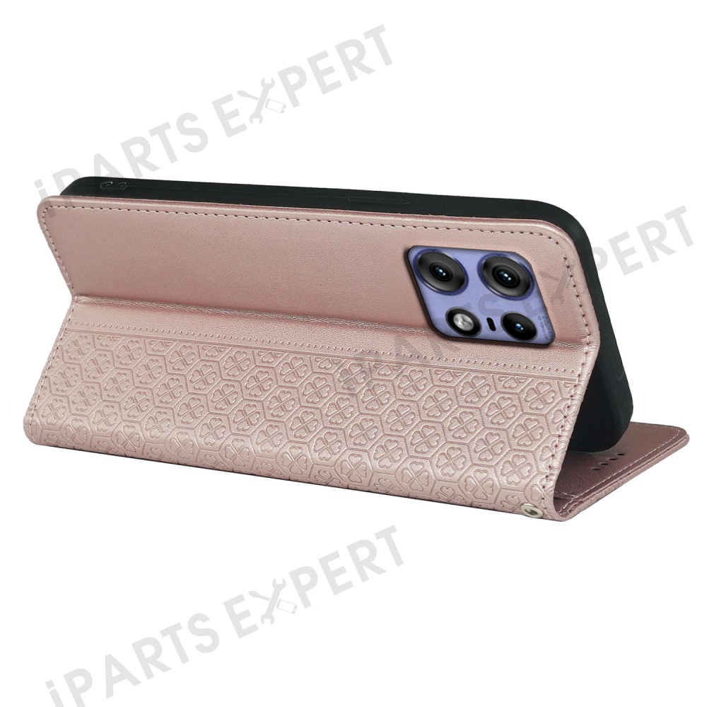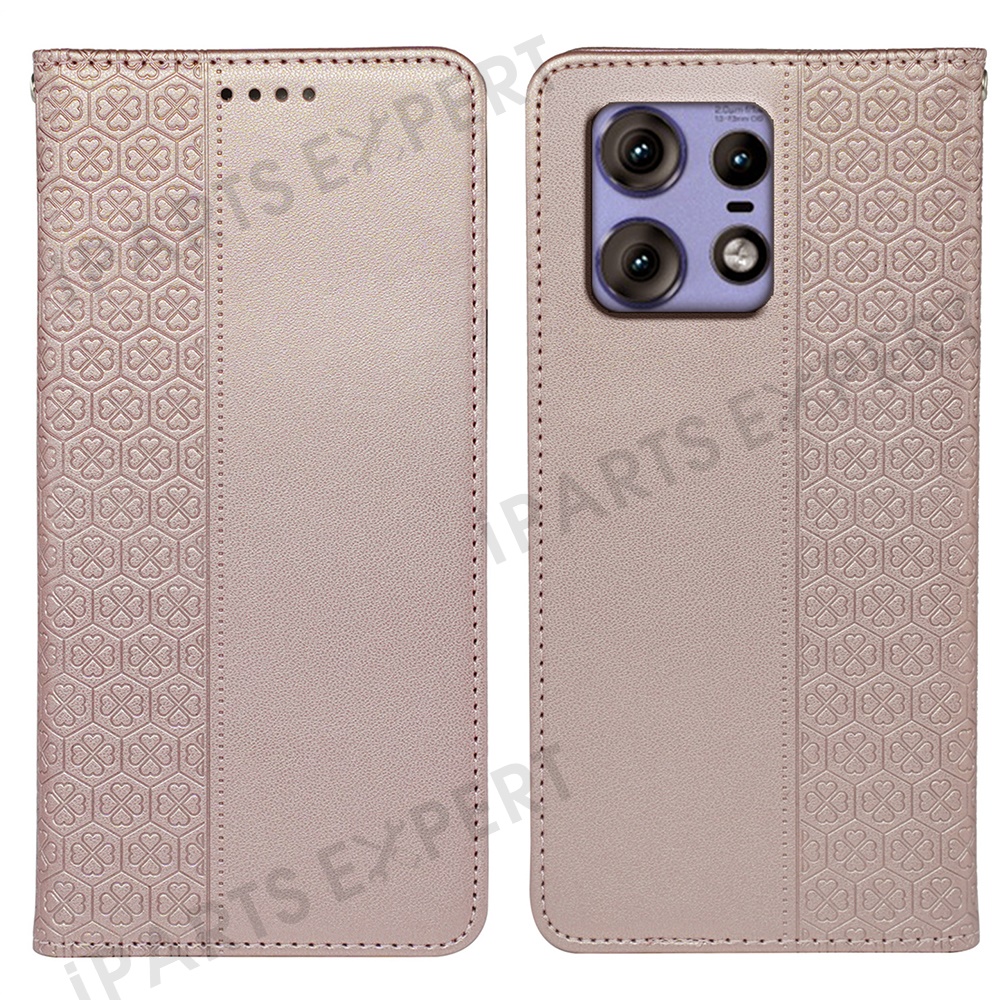 For Motorola Edge 50 Pro 5G Case Four Leaf Clover Leather Flip Phone Cover Stand Wallet - Rose Gold