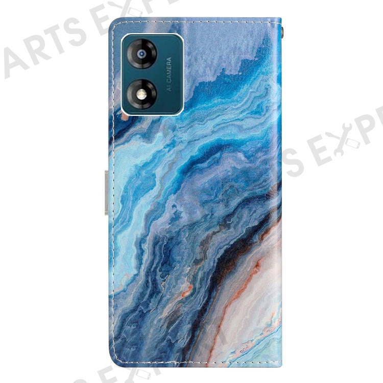 For Motorola Moto E13 4G PU Leather Pattern Printing Phone Case Stand Wallet Flip Phone Cover with Strap - Blue Marble