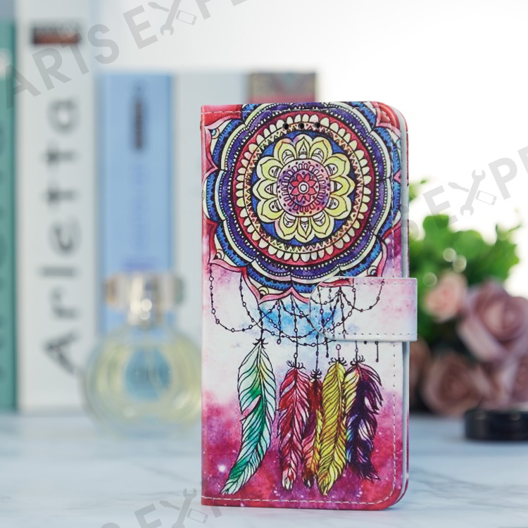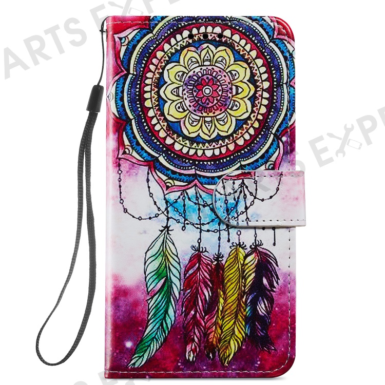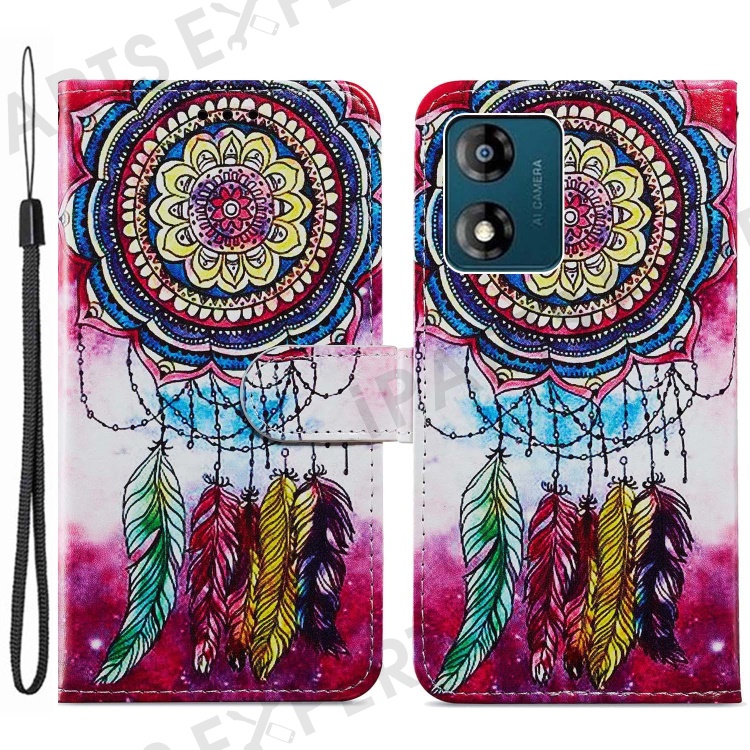For Motorola Moto E13 4G PU Leather Pattern Printing Phone Case Stand Wallet Flip Phone Cover with Strap - Dream Catcher