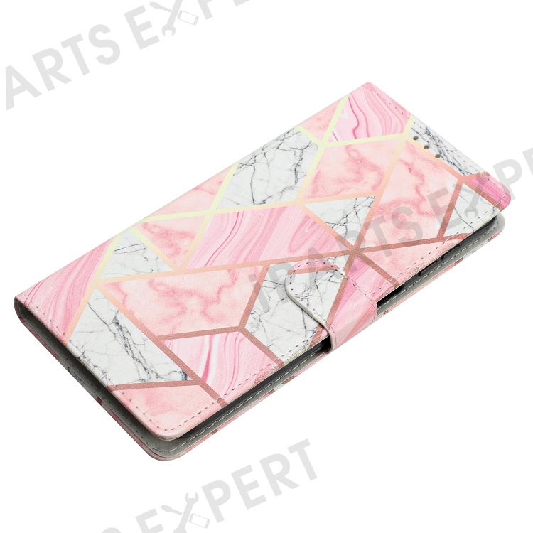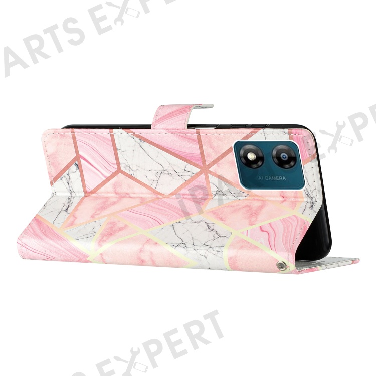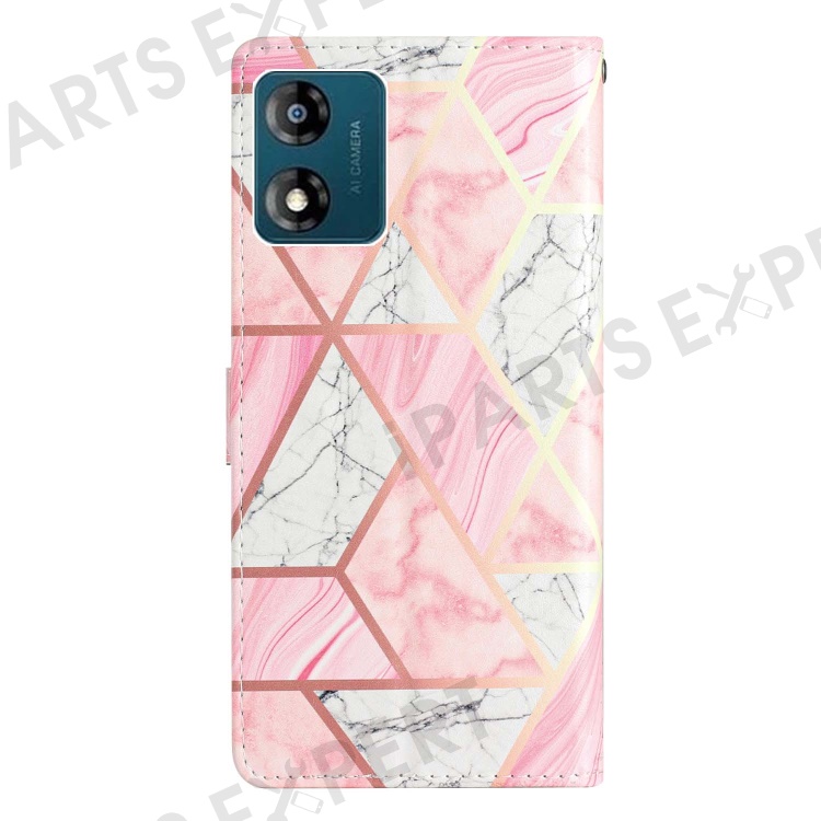 For Motorola Moto E13 4G PU Leather Pattern Printing Phone Case Stand Wallet Flip Phone Cover with Strap - Pink Marble