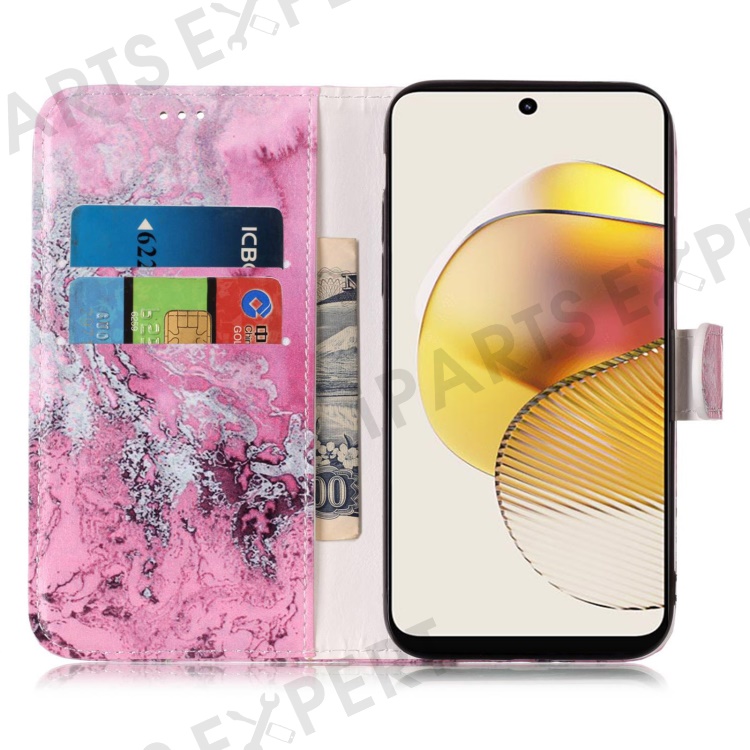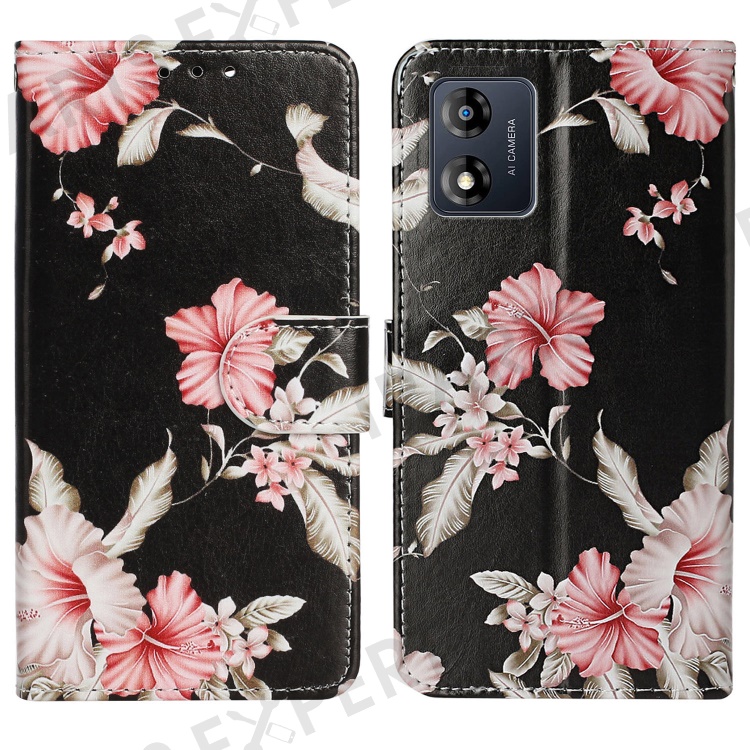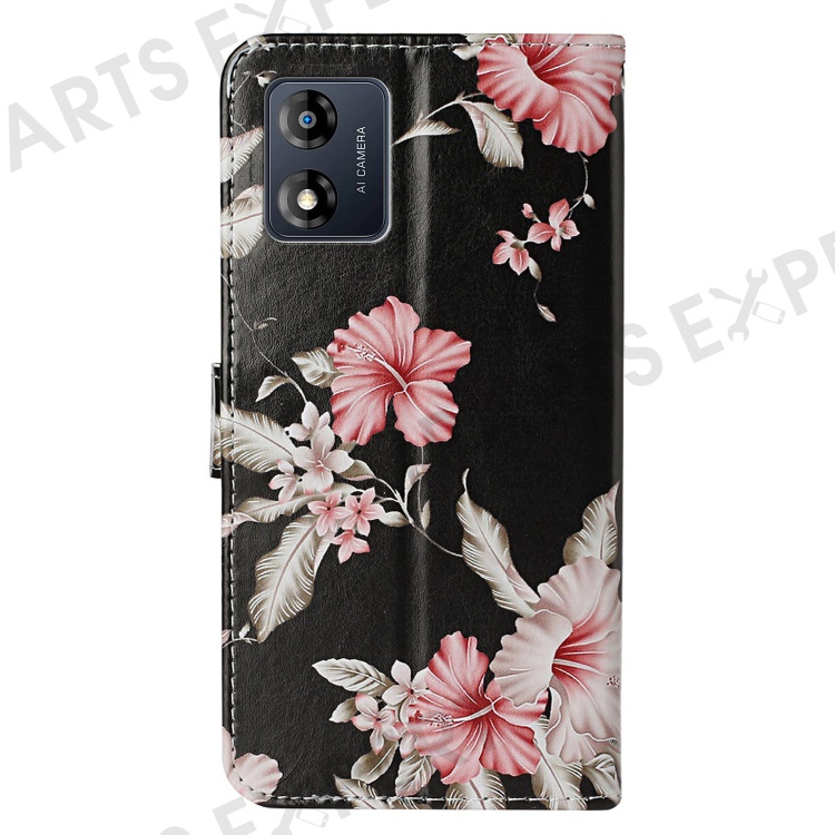 For Motorola Moto E13 4G PU Leather Pattern Printing Phone Case Wallet Stand Flip Folio Protective Cover - Azalea