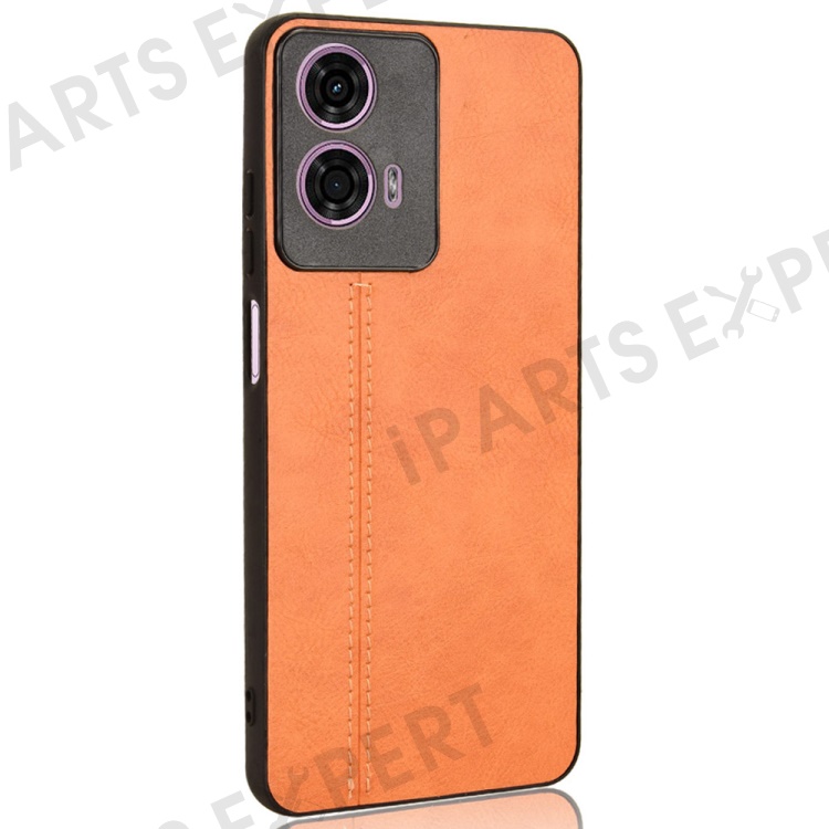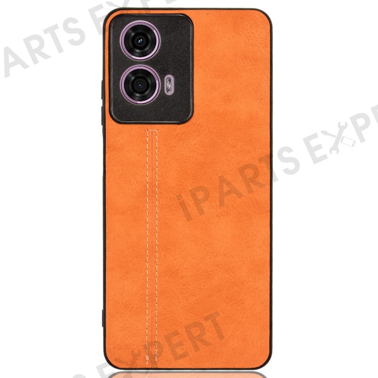 For Motorola Moto E14 4G Case Stitching Line Leather+PC+TPU Hybrid Phone Cover - Orange