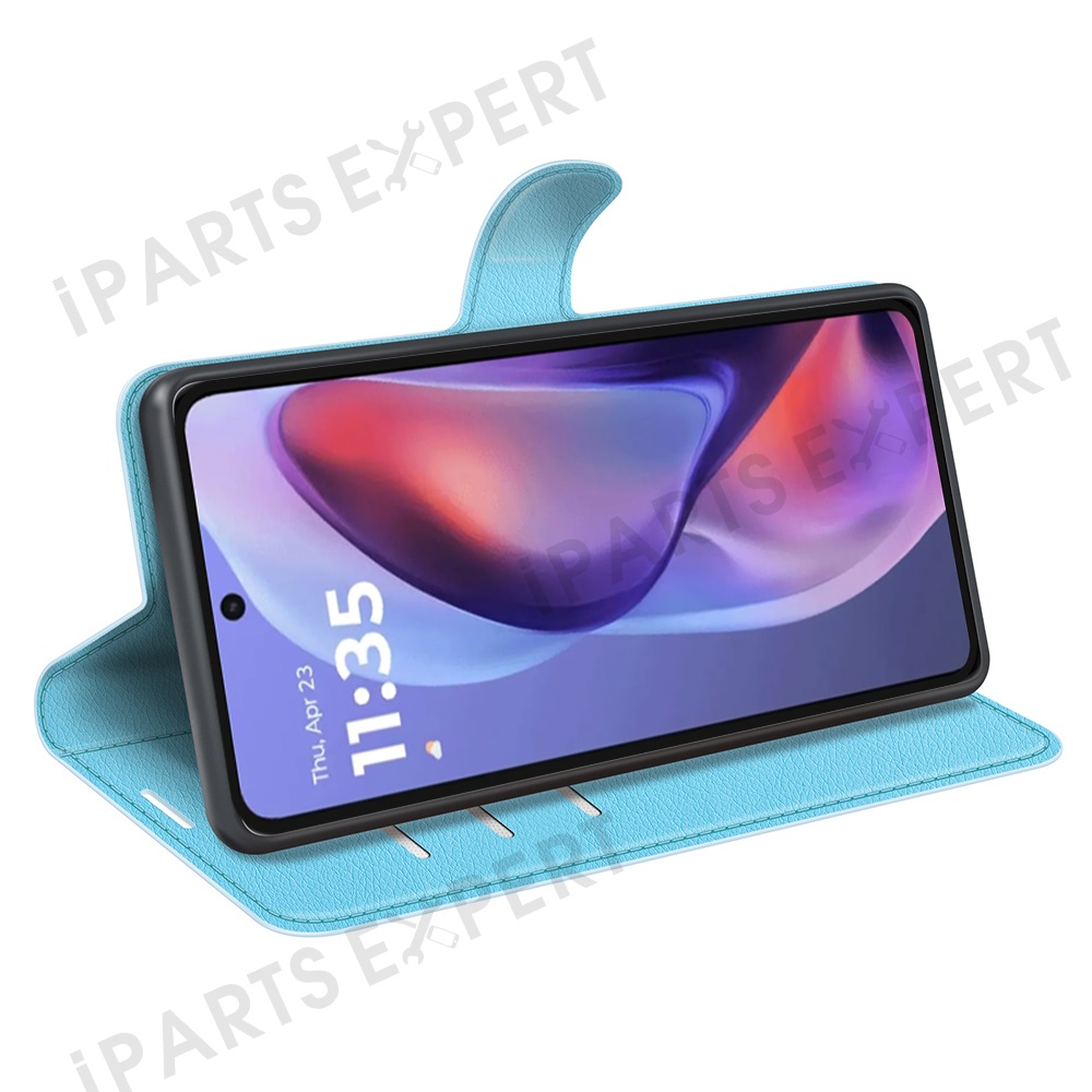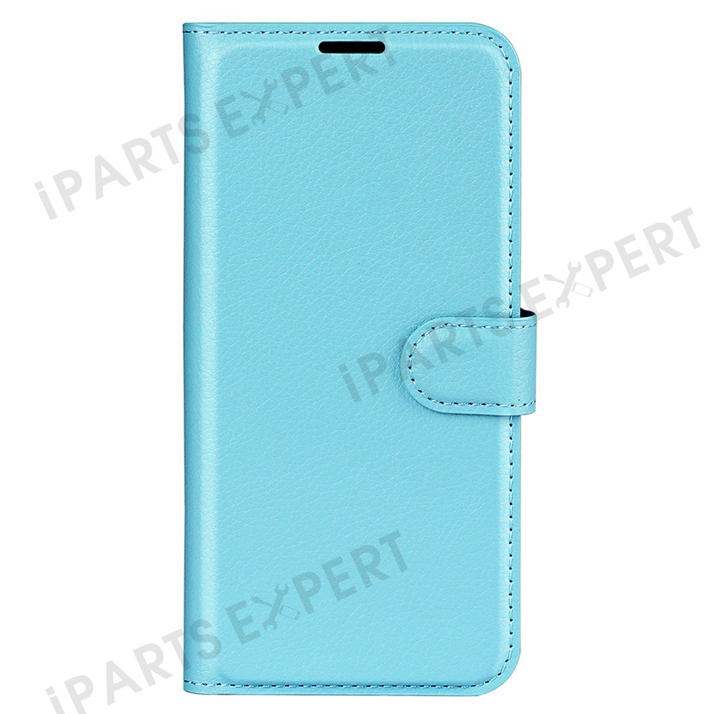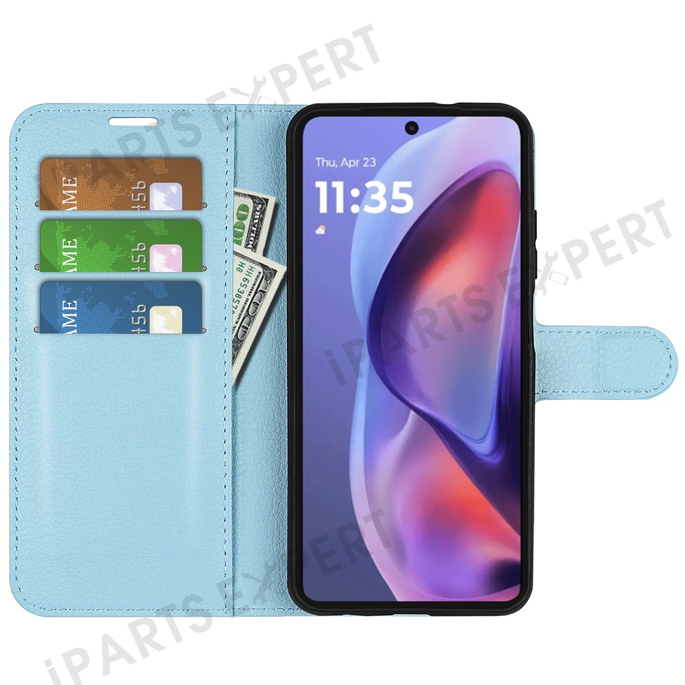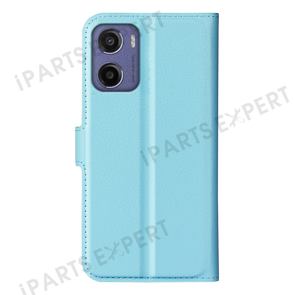 For Motorola Moto E15 4G Case Litchi Texture Shockproof Leather Wallet Phone Cover - Blue