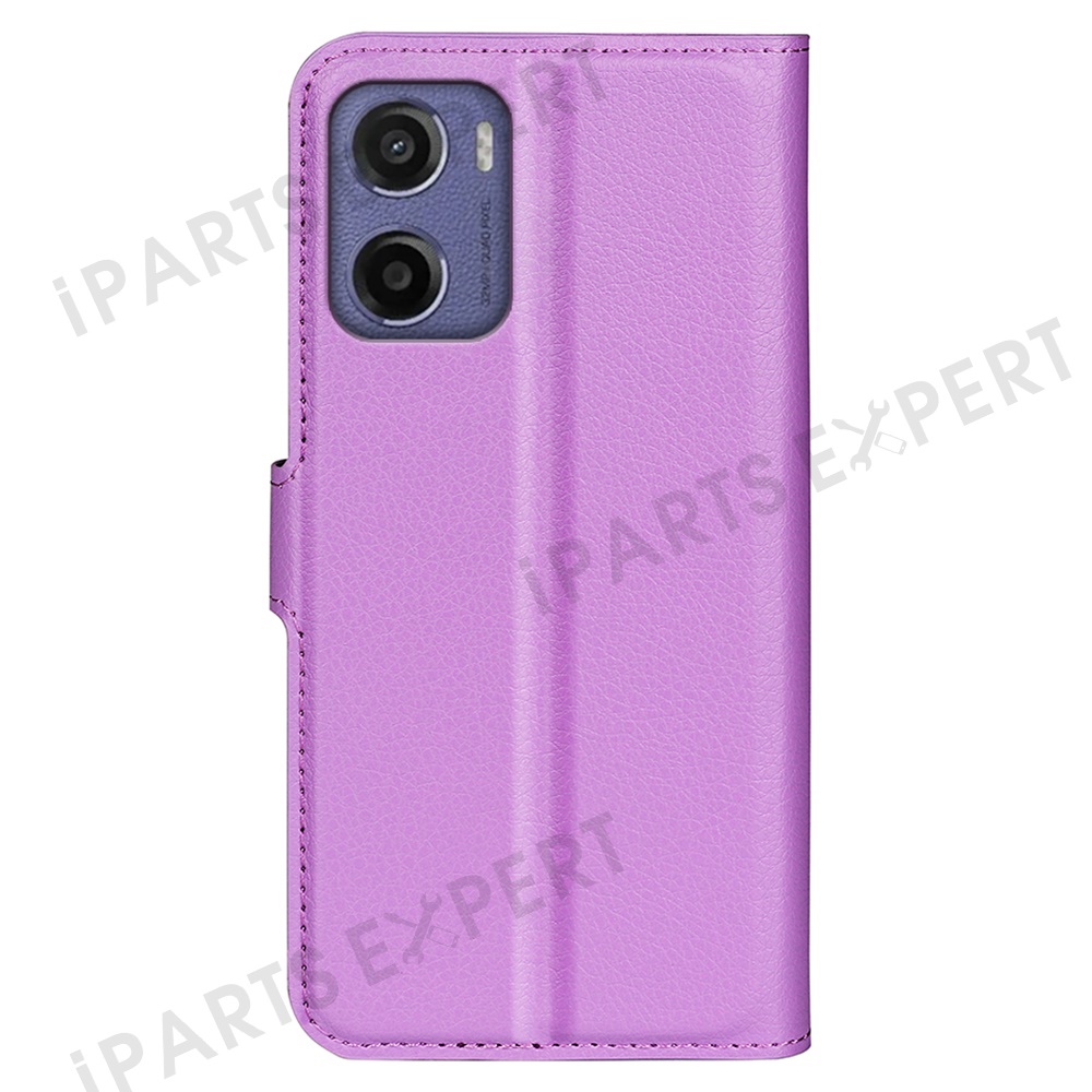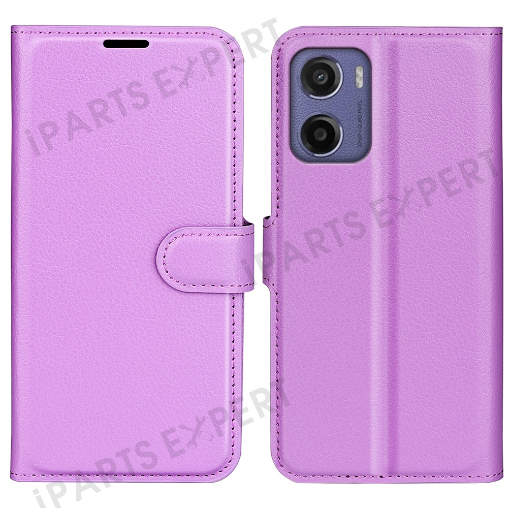 For Motorola Moto E15 4G Case Litchi Texture Shockproof Leather Wallet Phone Cover - Purple
